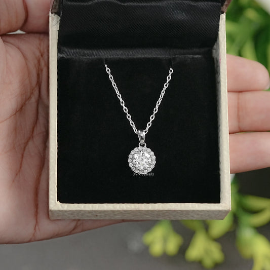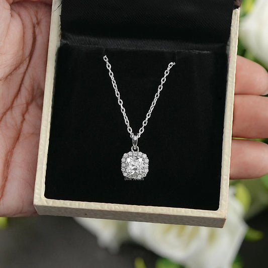 Cushion Cut Lab Grown Diamond Halo Pendant