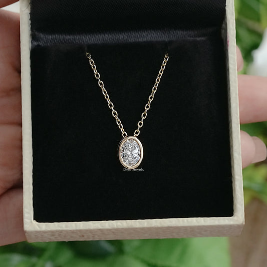 Lab Grown Oval Cut Bezel Set Diamond Pendant