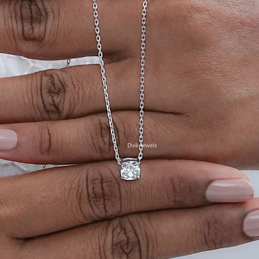 Square Old Mine Cushion Cut Lab Diamond Solitaire Pendant