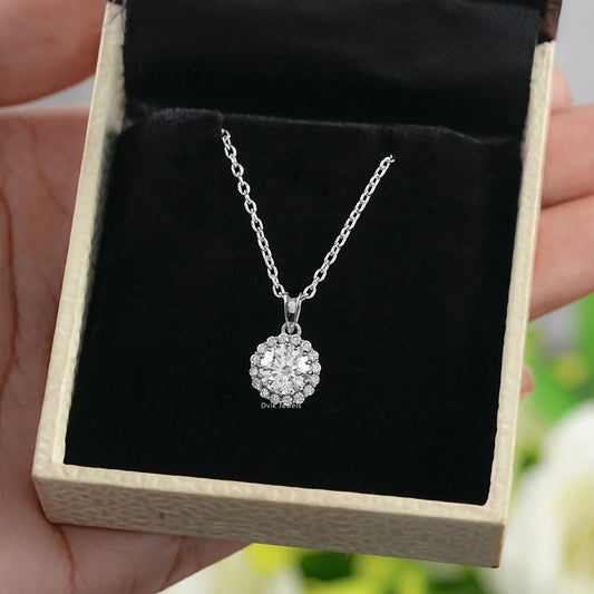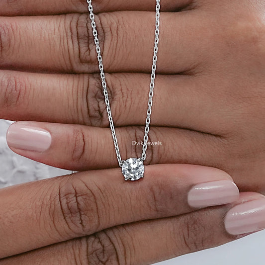 Old European Round Cut Lab Diamond Solitaire Pendant