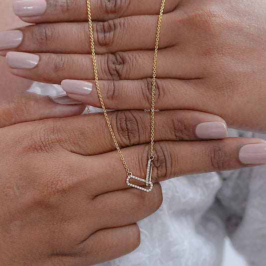 Round Lab Diamond Open Rectangle Double Link Pendant
