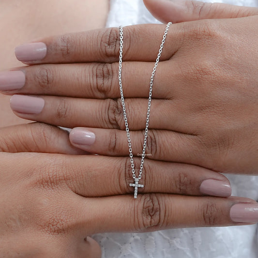 Marquise Cut Lab Diamond Dainty Cross Pendant