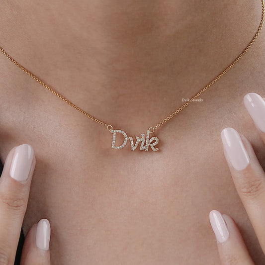 Round Cut Lab Diamond Custom Name Pendant