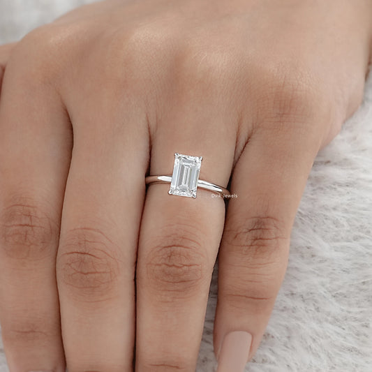 Bezel Set Emerald Cut Lab Diamond Engagement Ring