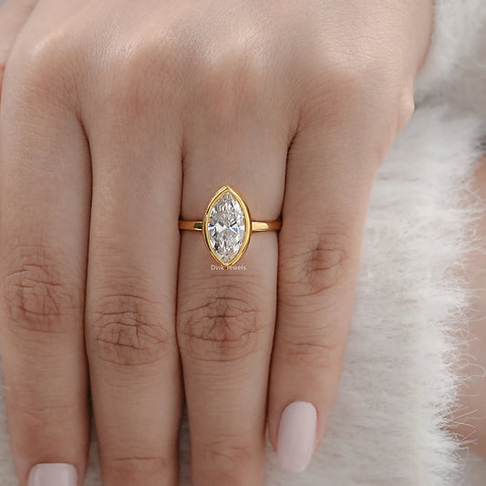 Bezel Set Marquise Lab Diamond Soliteire Ring