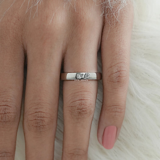 A symbolic ring that is exchanged at a marriage ceremony is called a wedding band. It represents unity, dedication, and unending love. Lab-grown diamonds and gold are used to construct our wedding bands at Dvik Jewels, guaranteeing ethical luxury.