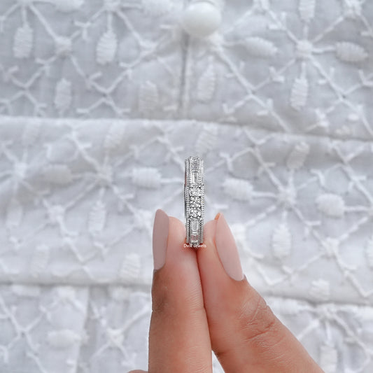 Milgrain Baguette Cut Lab Diamond Wedding Band