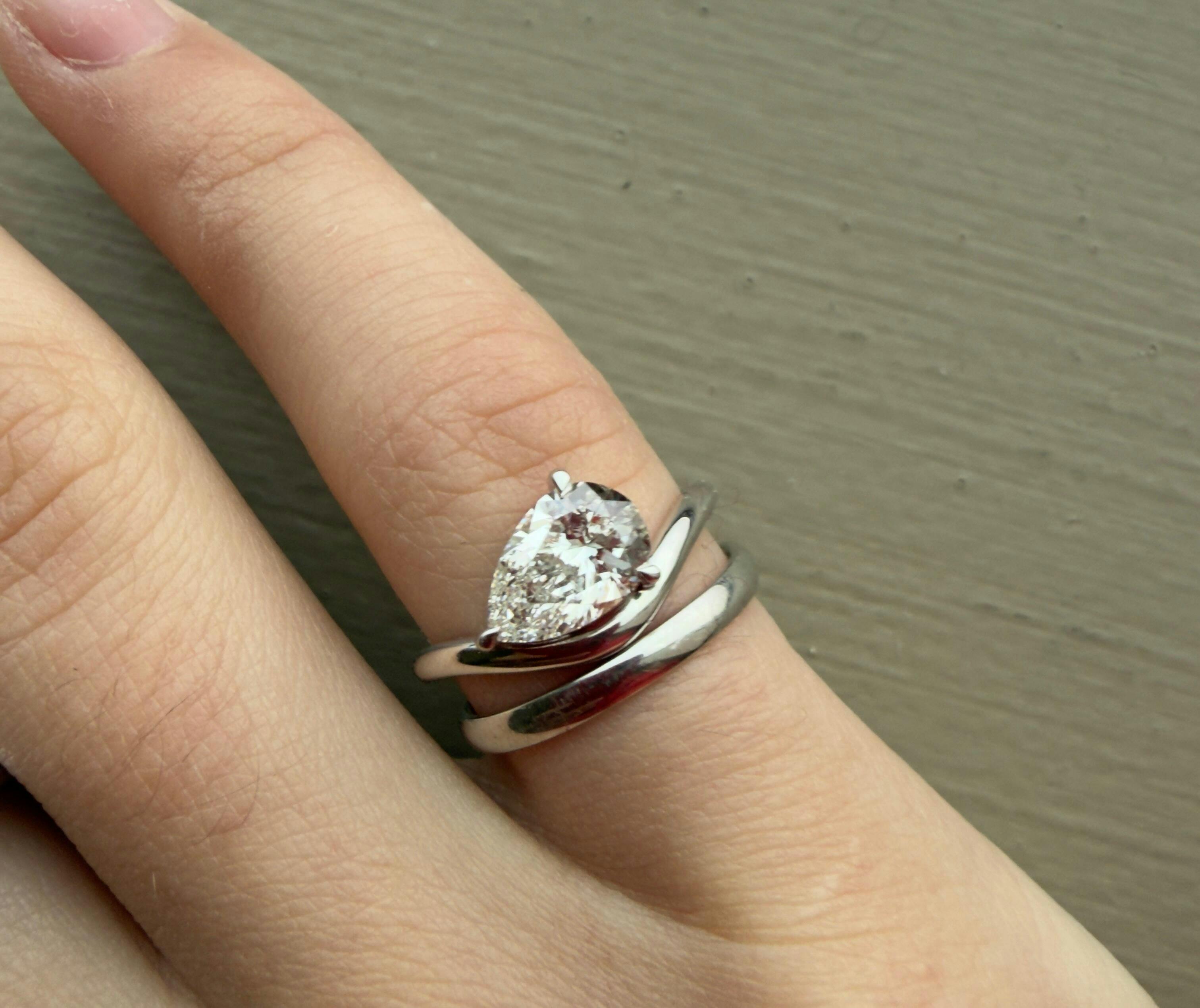 Pear Cut Lab Diamond Curved Solitaire Ring