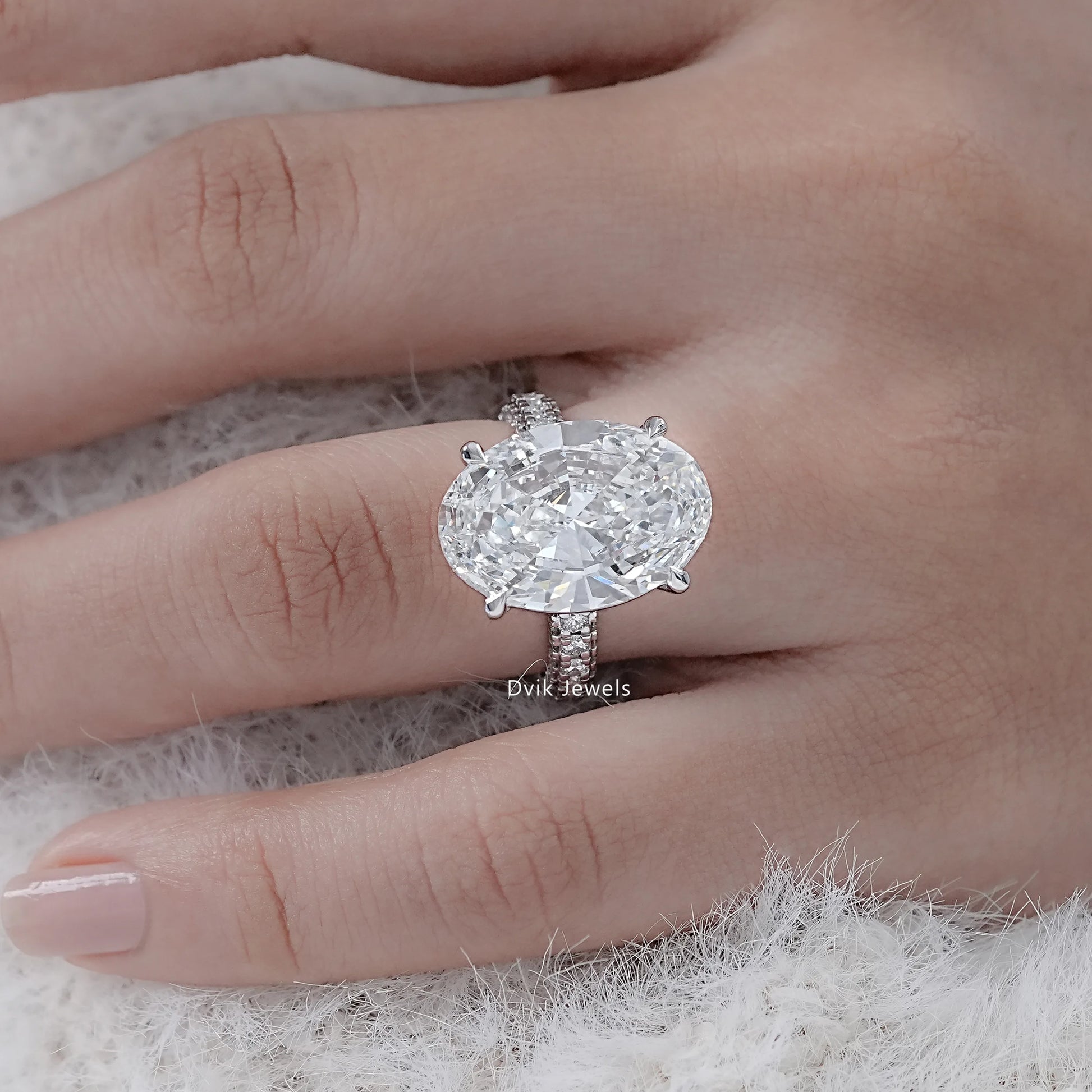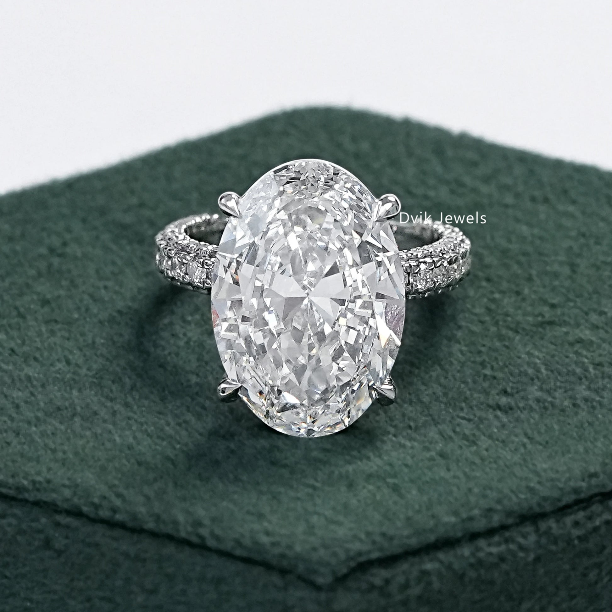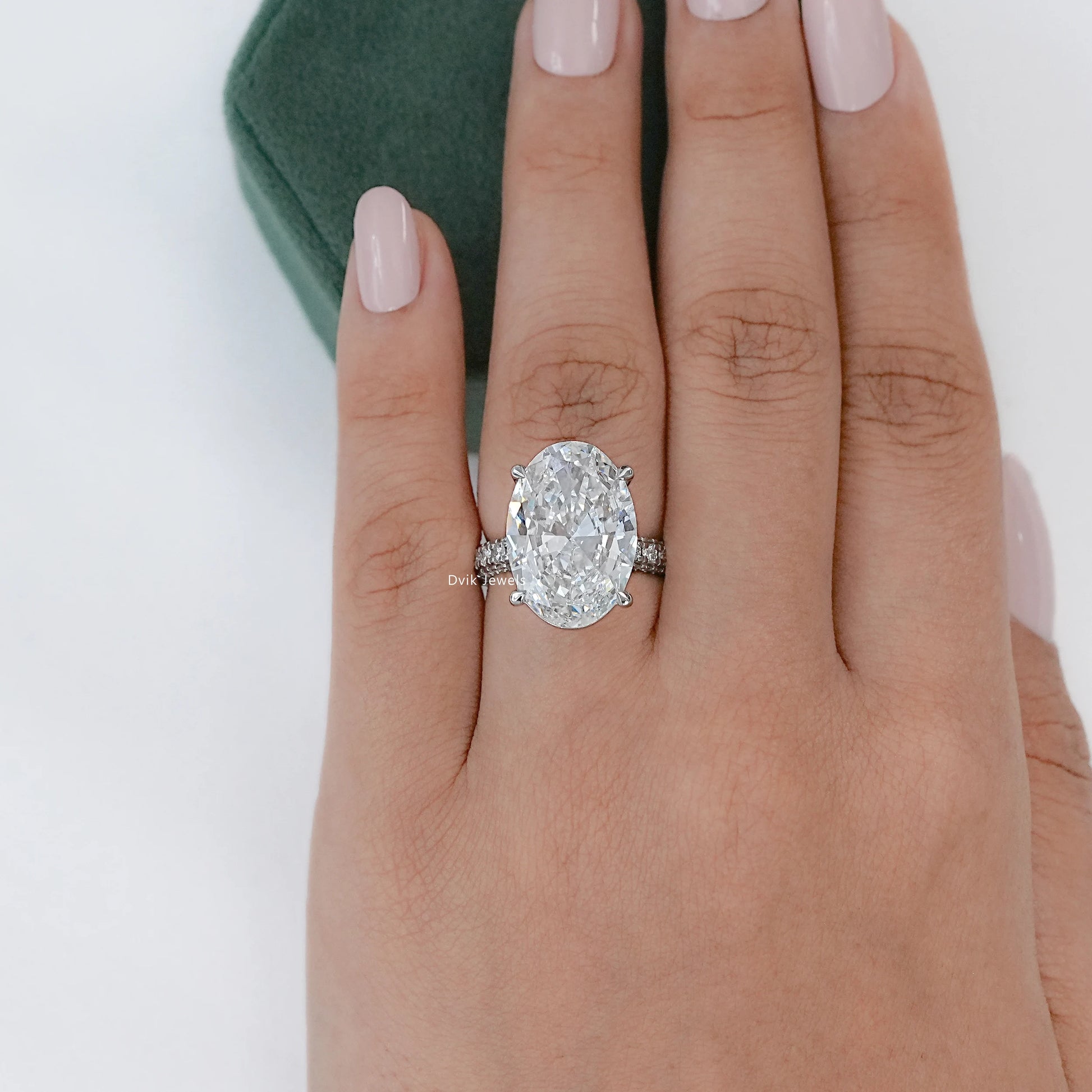 10 CT Oval Cut Lab Diamond Three Row Engagement Ring