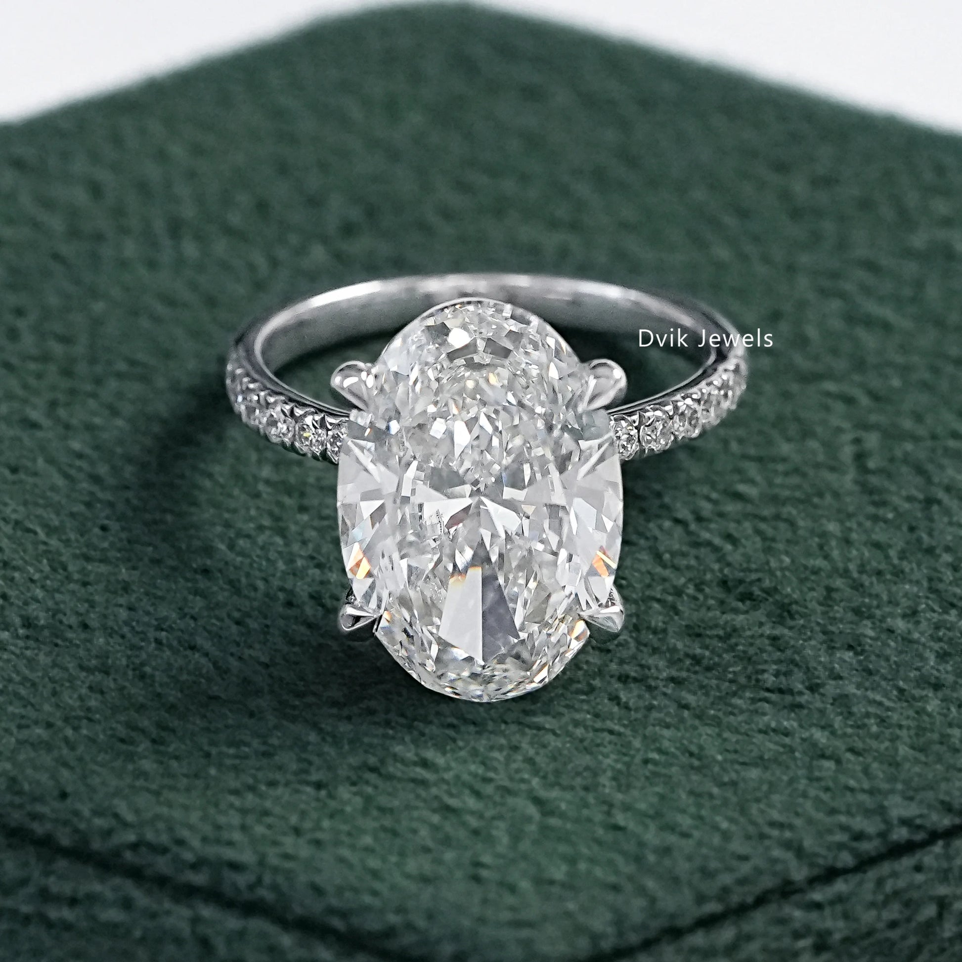 7 CT Oval Cut Lab Diamond Accent Set Ring