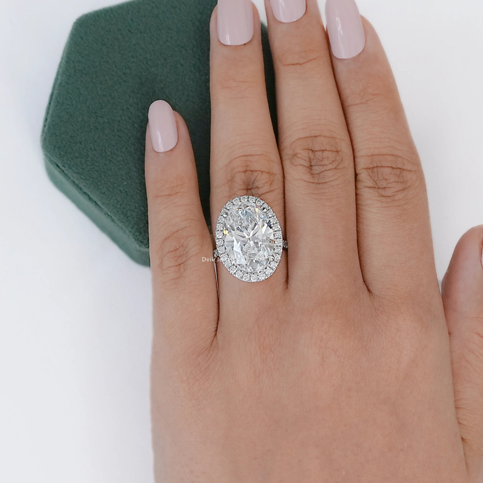 9 CT Oval Lab Diamond Halo Accent Engagement Ring
