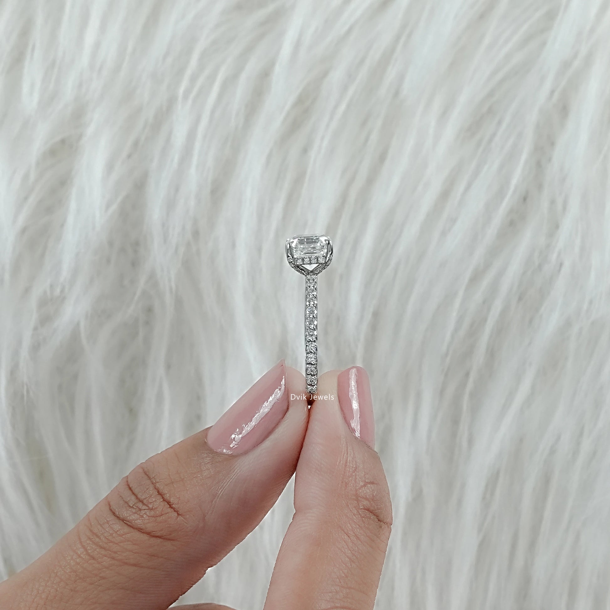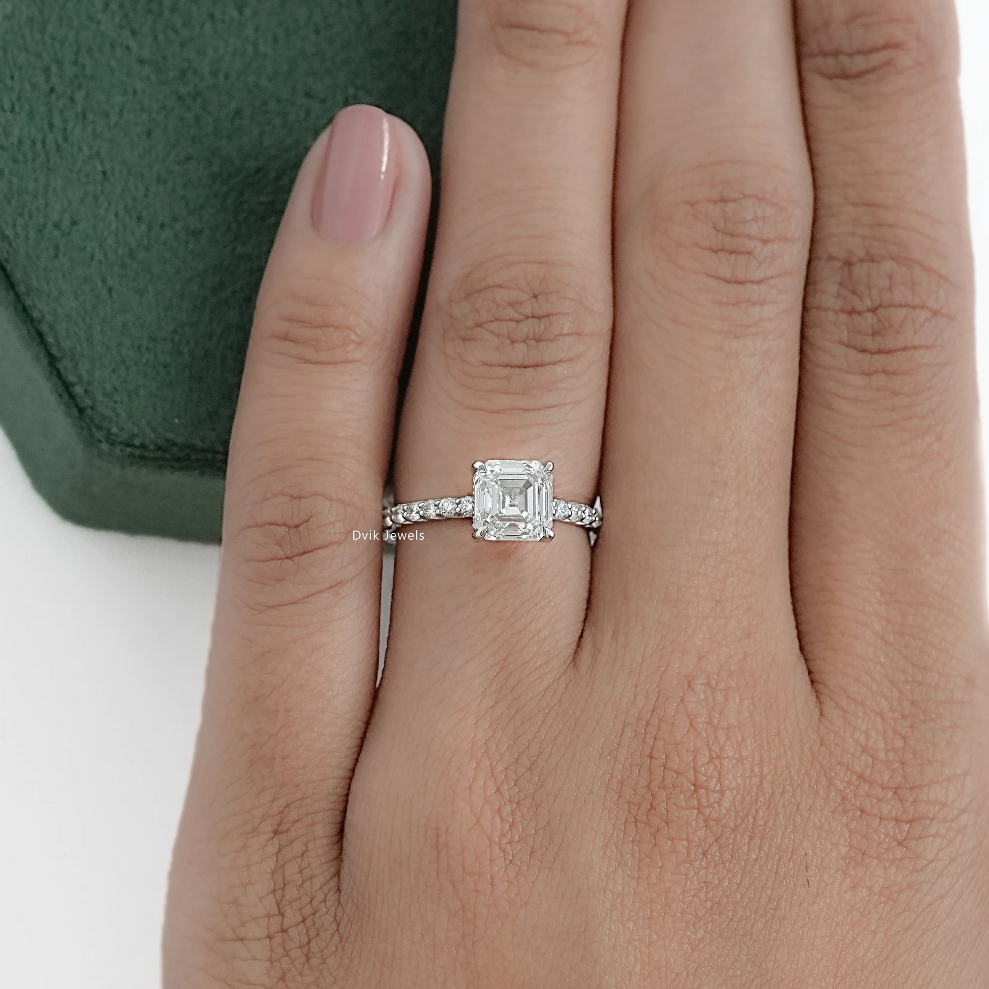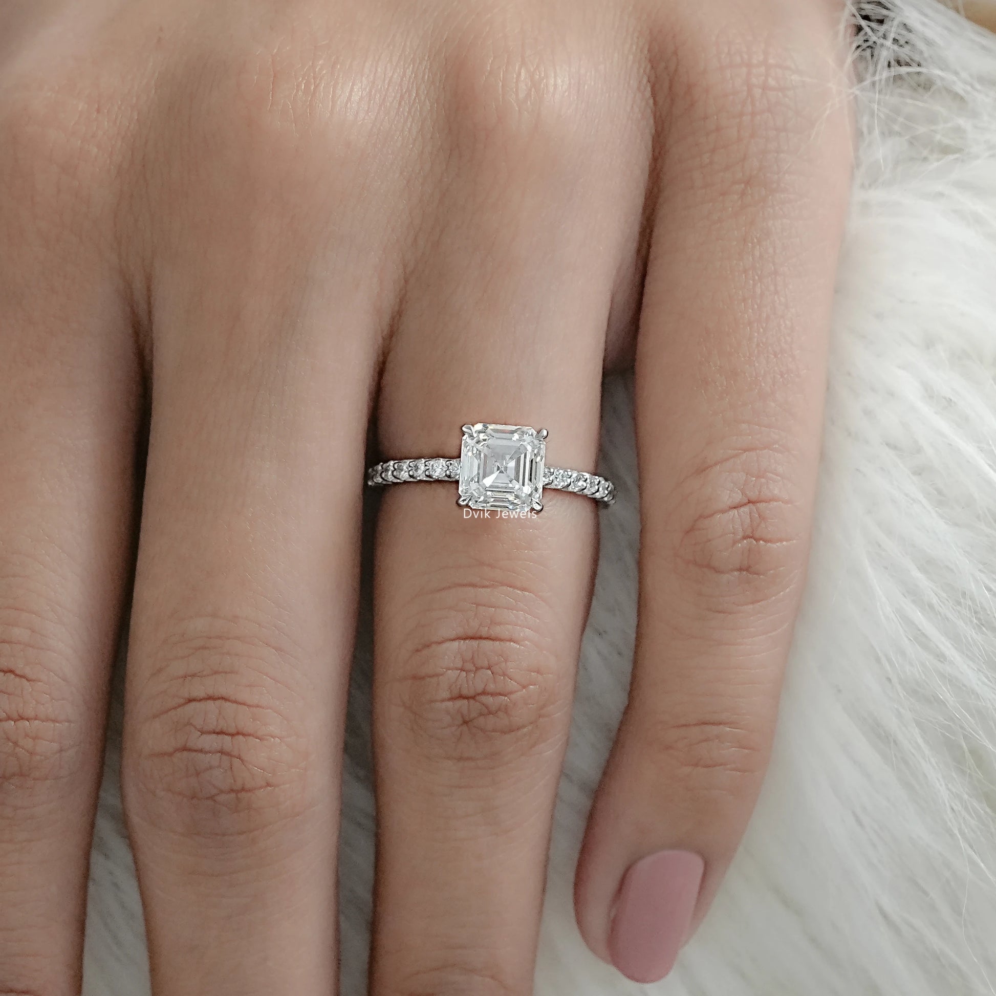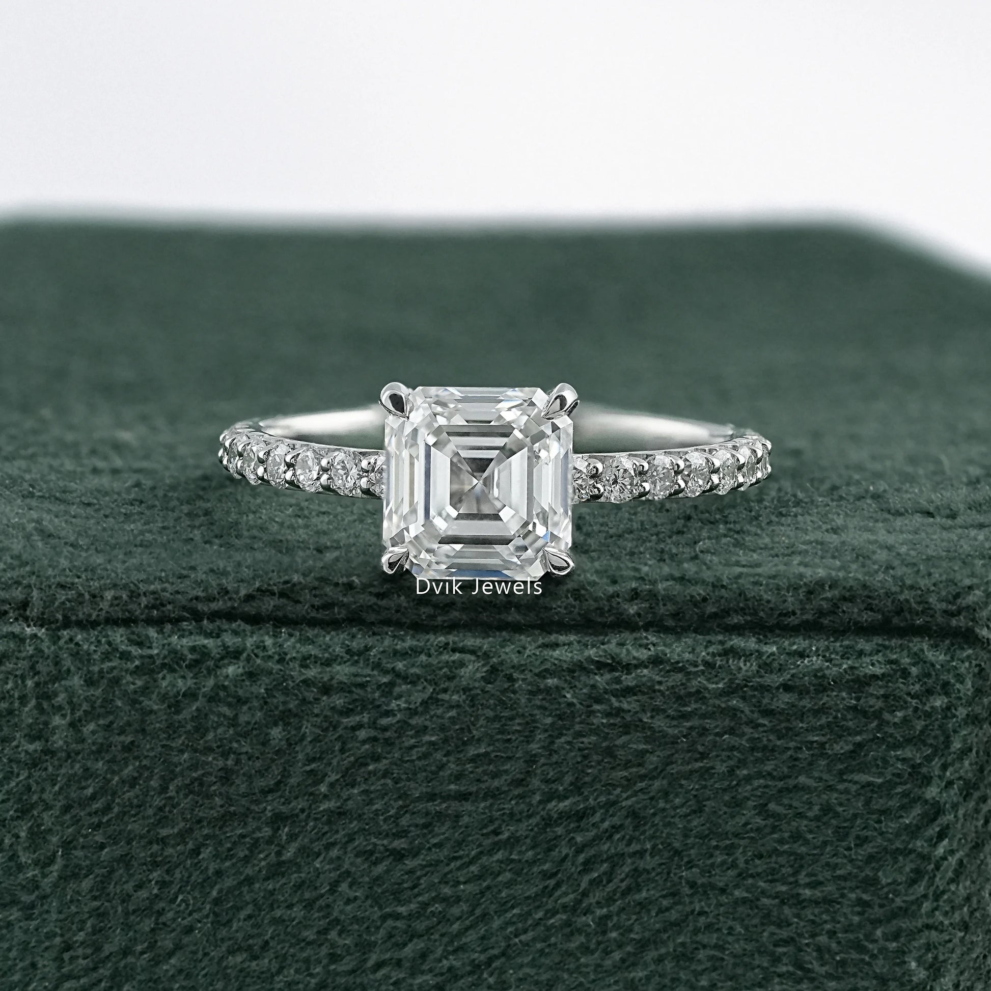 Asscher Cut Lab Diamond Accent Ring with Pave Band