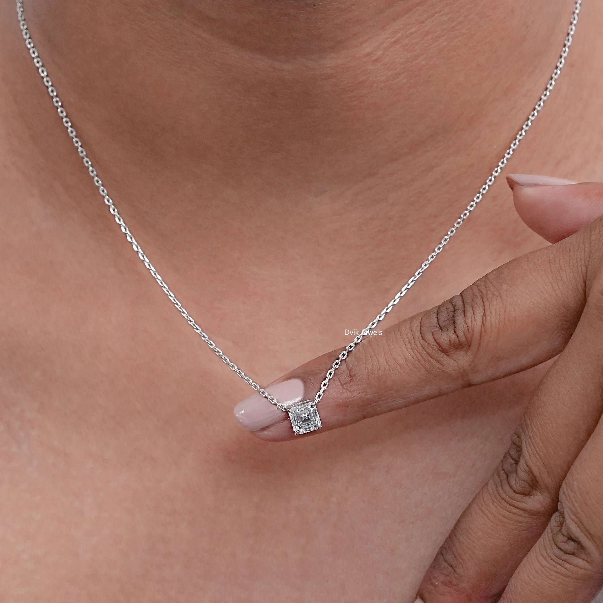 Asscher Cut Lab Diamond Solitaire Pendant