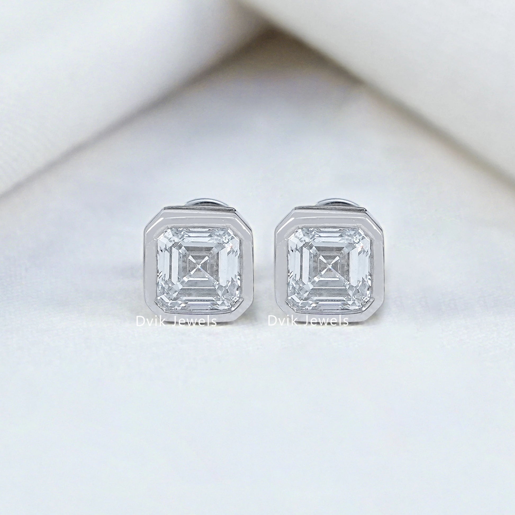 Bezel Set Asscher Cut Lab Diamond Stud Earrings