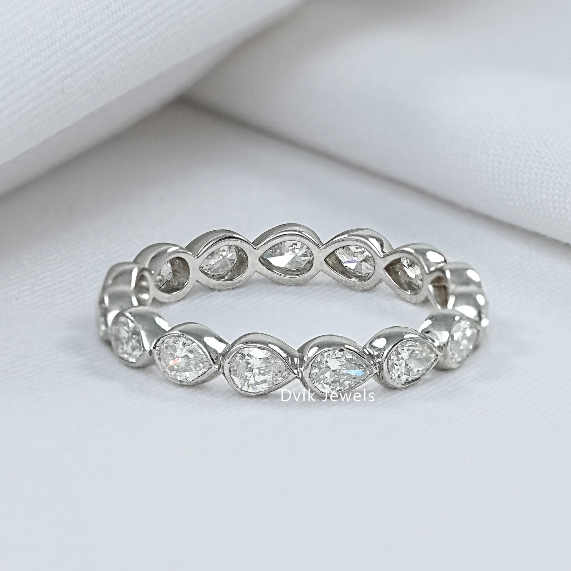 Bezel Set Pear Cut Lab Diamond Full Eternity Wedding Band
