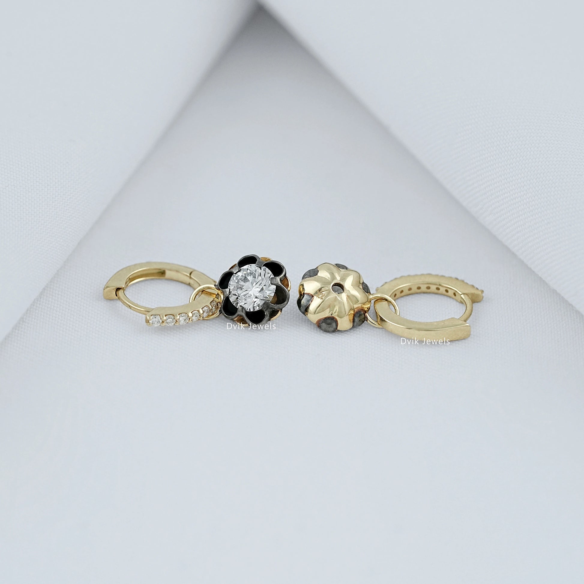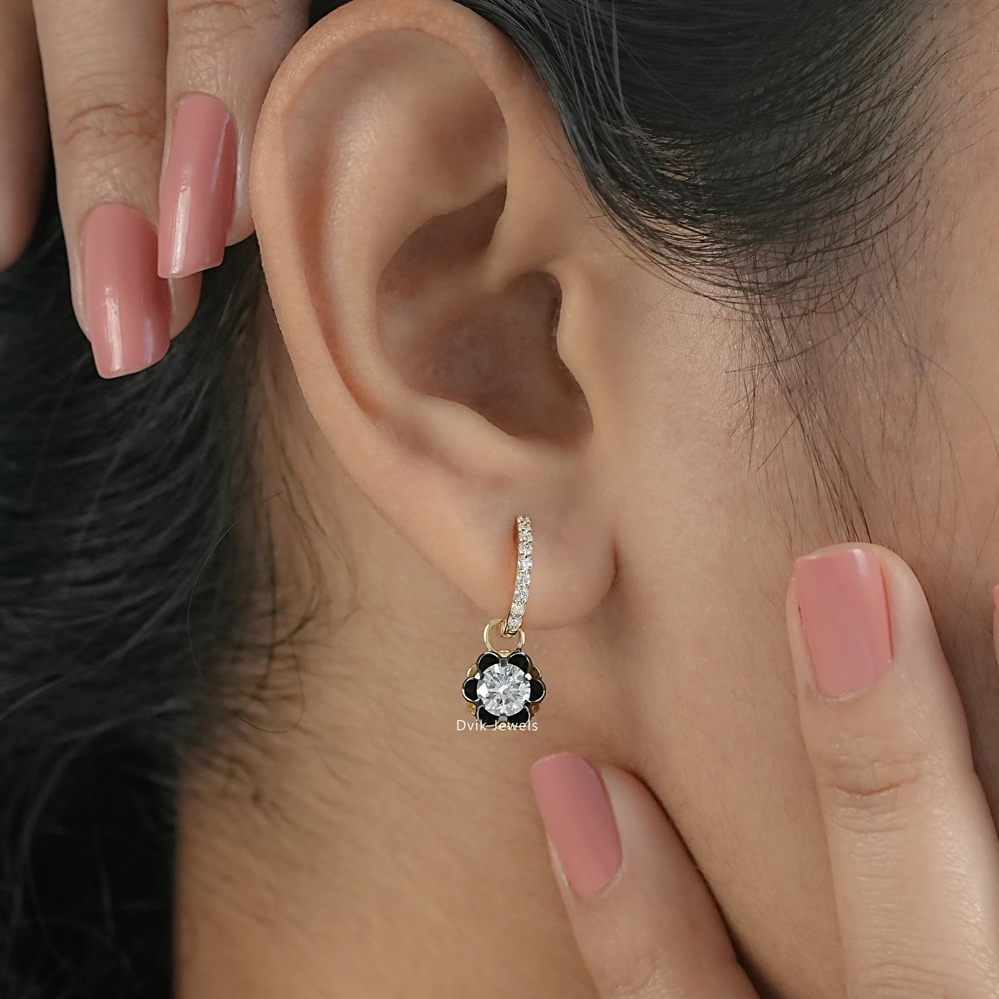 Floral Diamond Drop Earrings with Black Enamel Petals