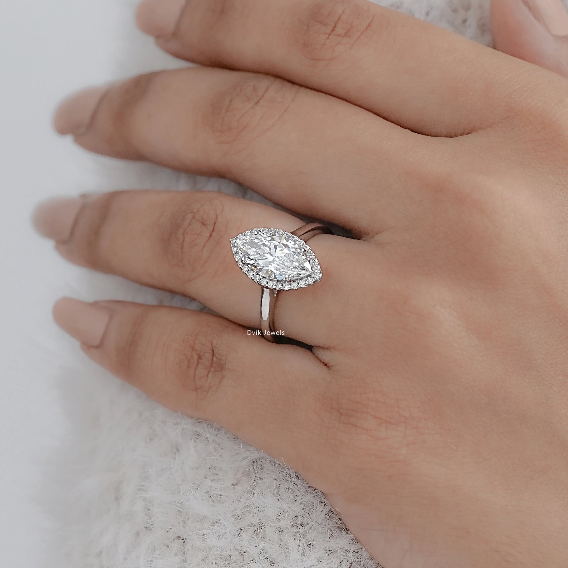 Classic Marquise Cut Halo Diamond Engagement Ring