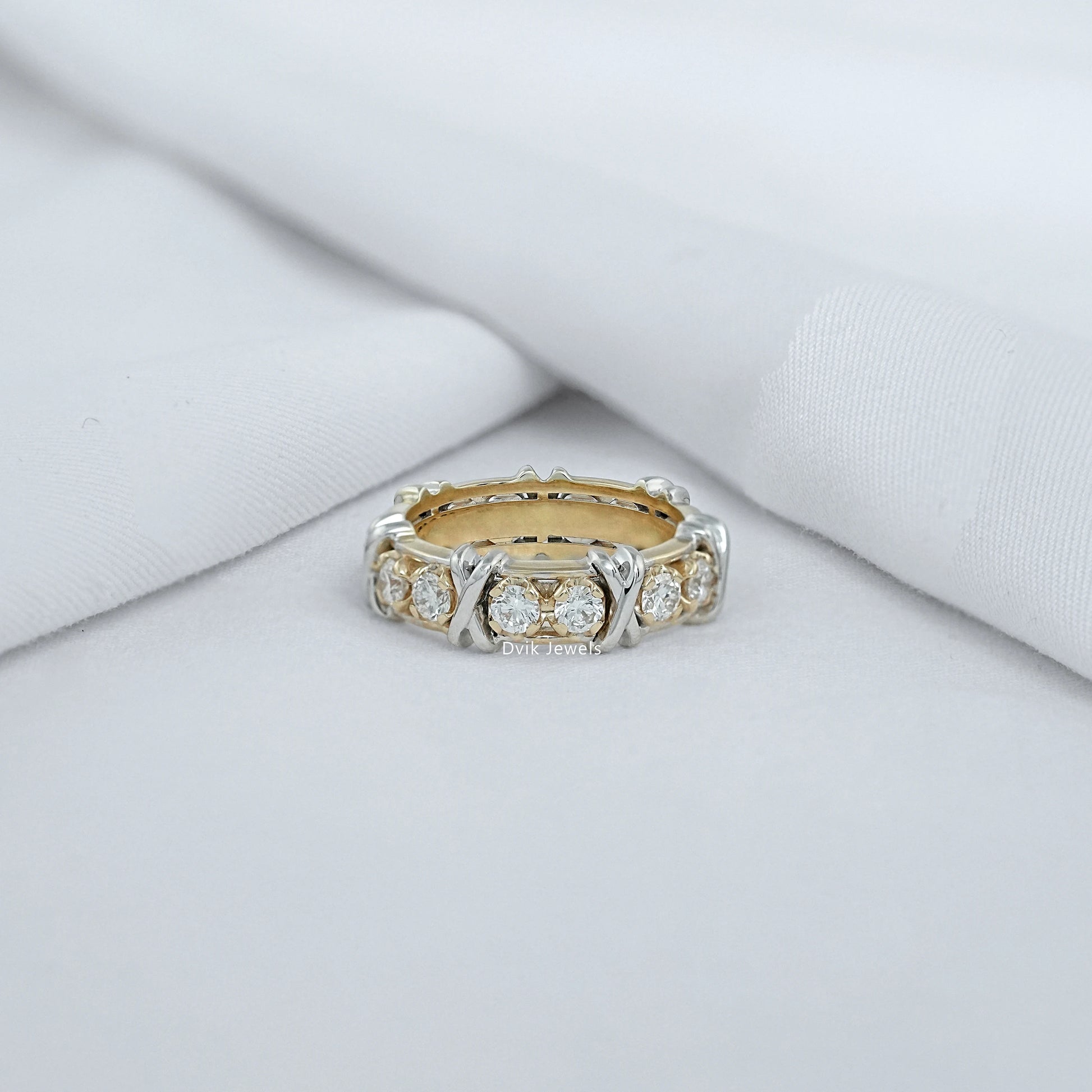 Round Diamond Band with Criss Cross Pattern