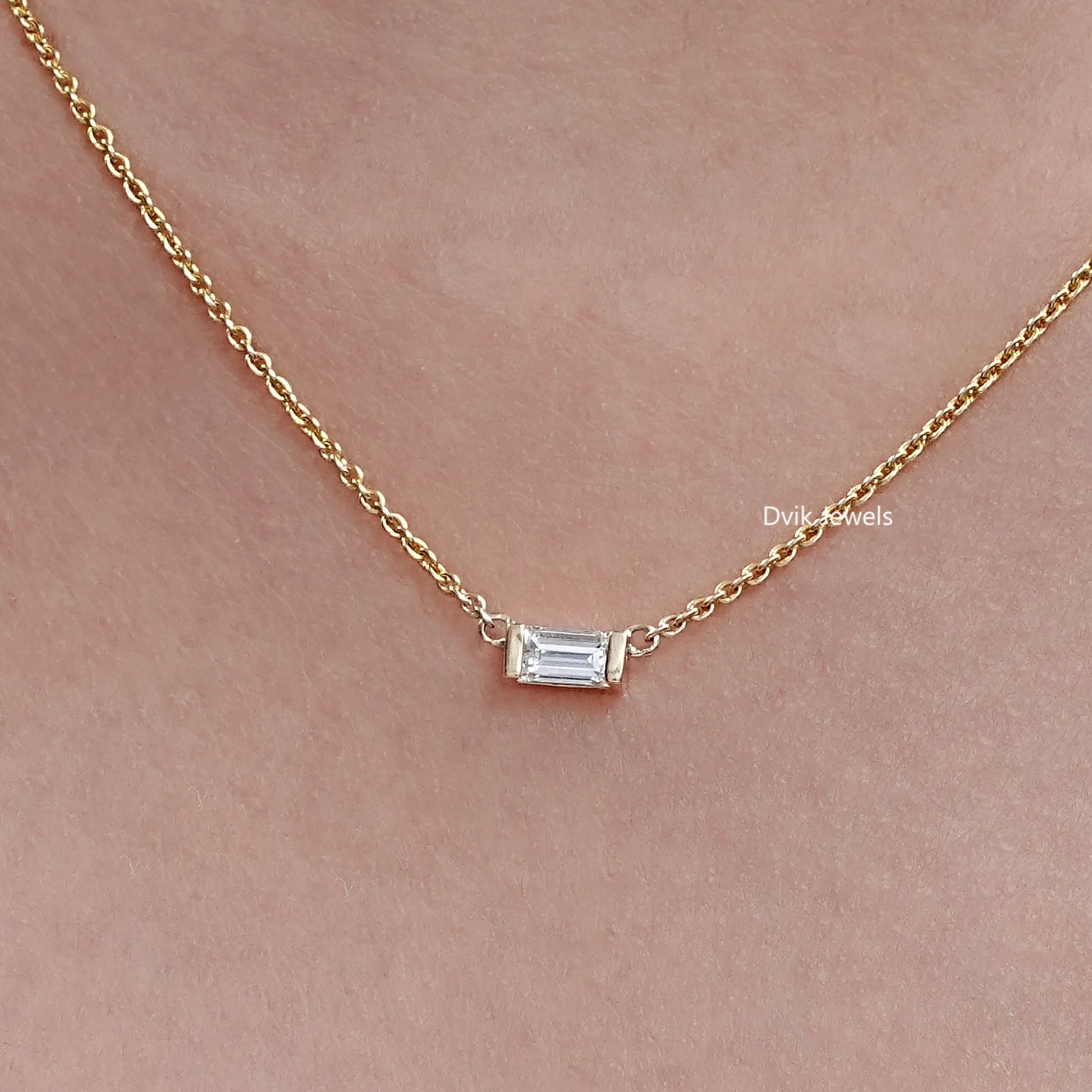 East West Baguette Lab Diamond Solitaire Pendant