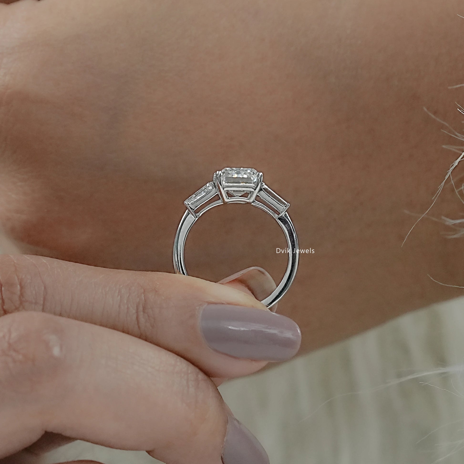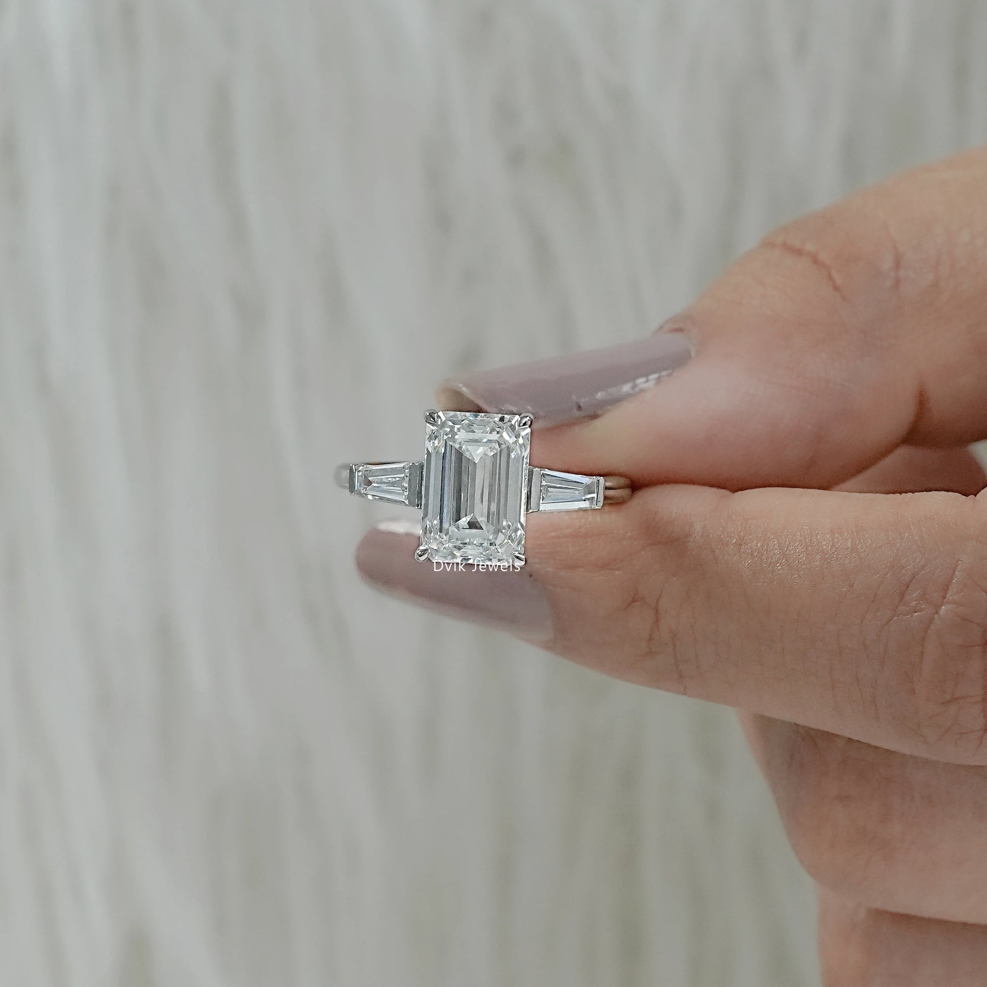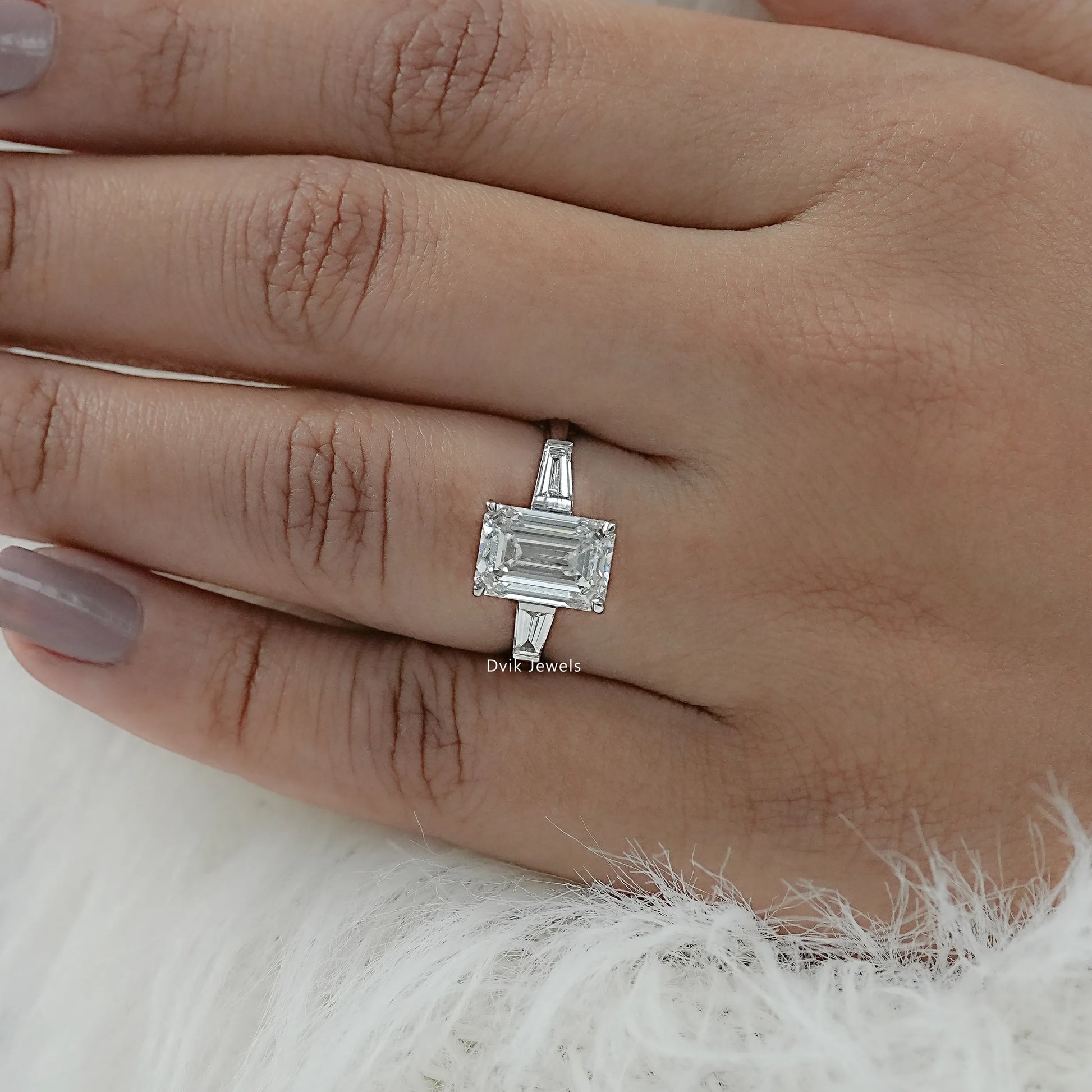 Emerald Cut Lab Diamond Tapered Baguette Side Stone Ring