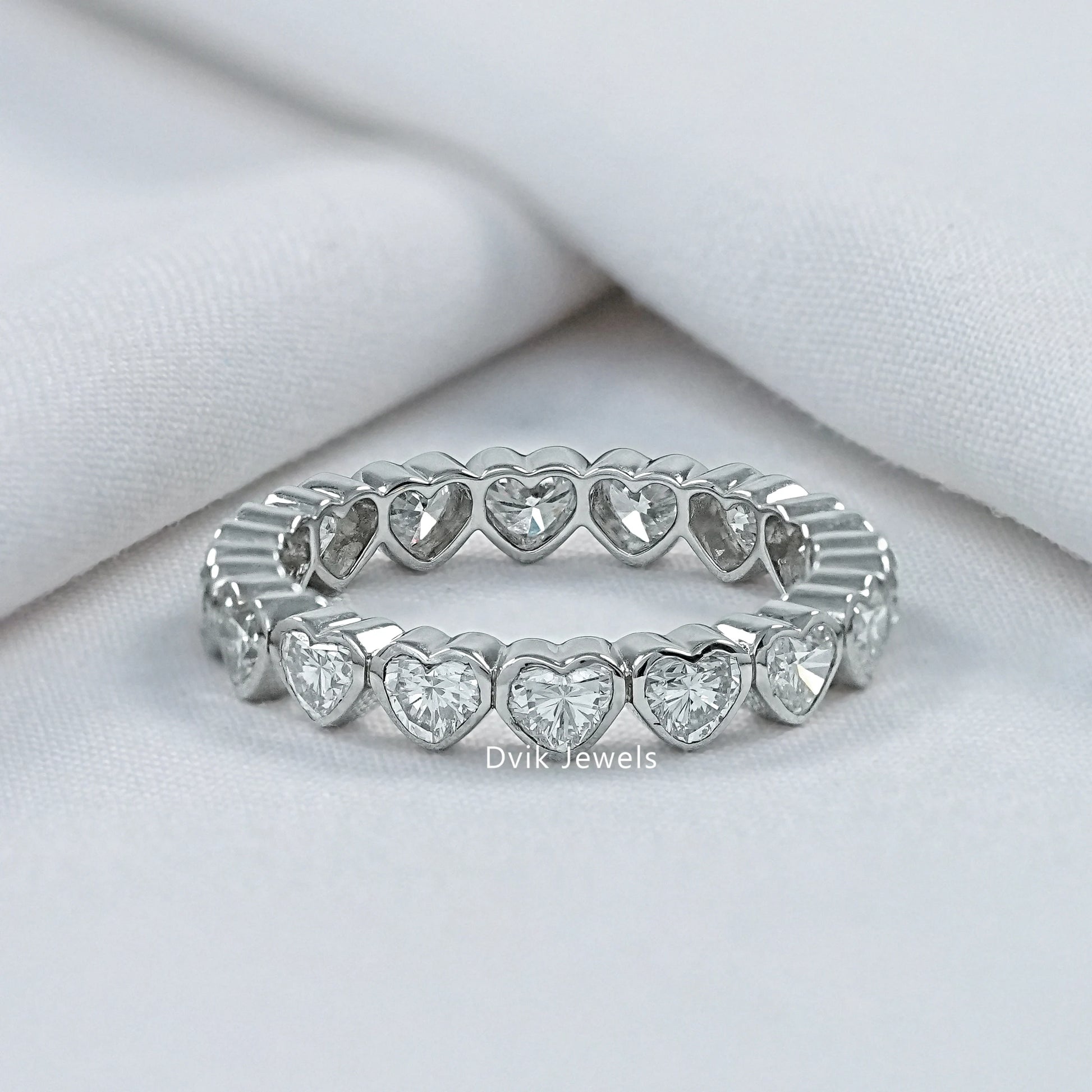 Heart Cut Bezel Set Lab Diamond Full Eternity Band