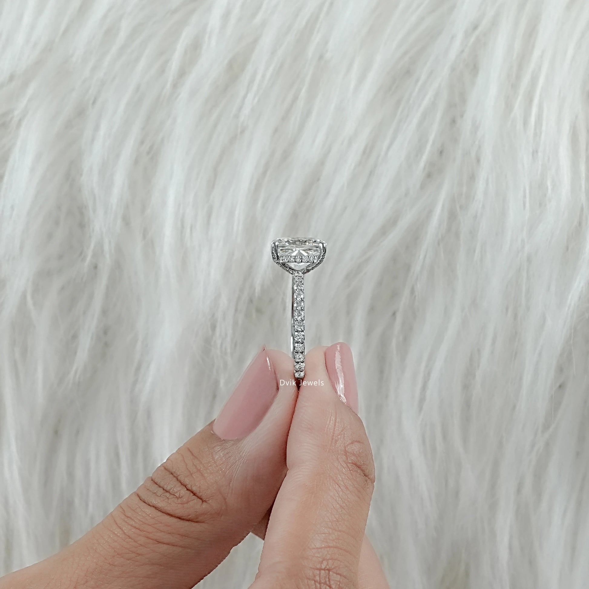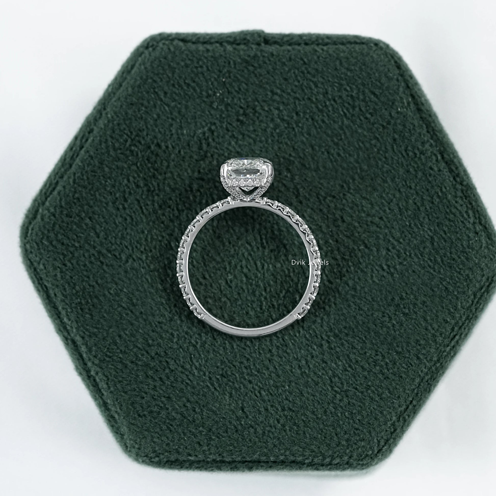 Cushion Cut Lab Diamond Engagement Ring With Pave Band
