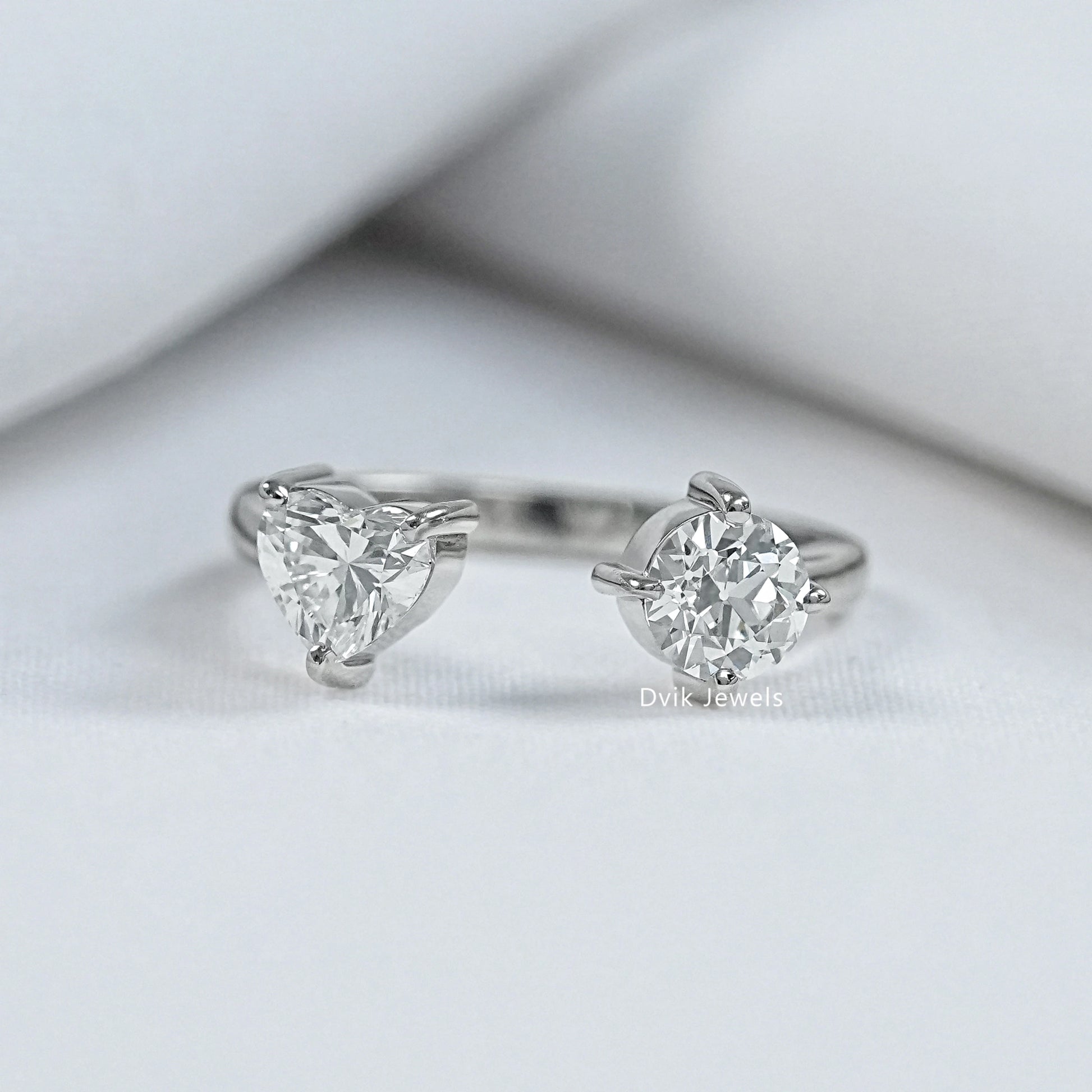 Heart and Round Cut Lab Diamond Toi Moi Engagement Ring