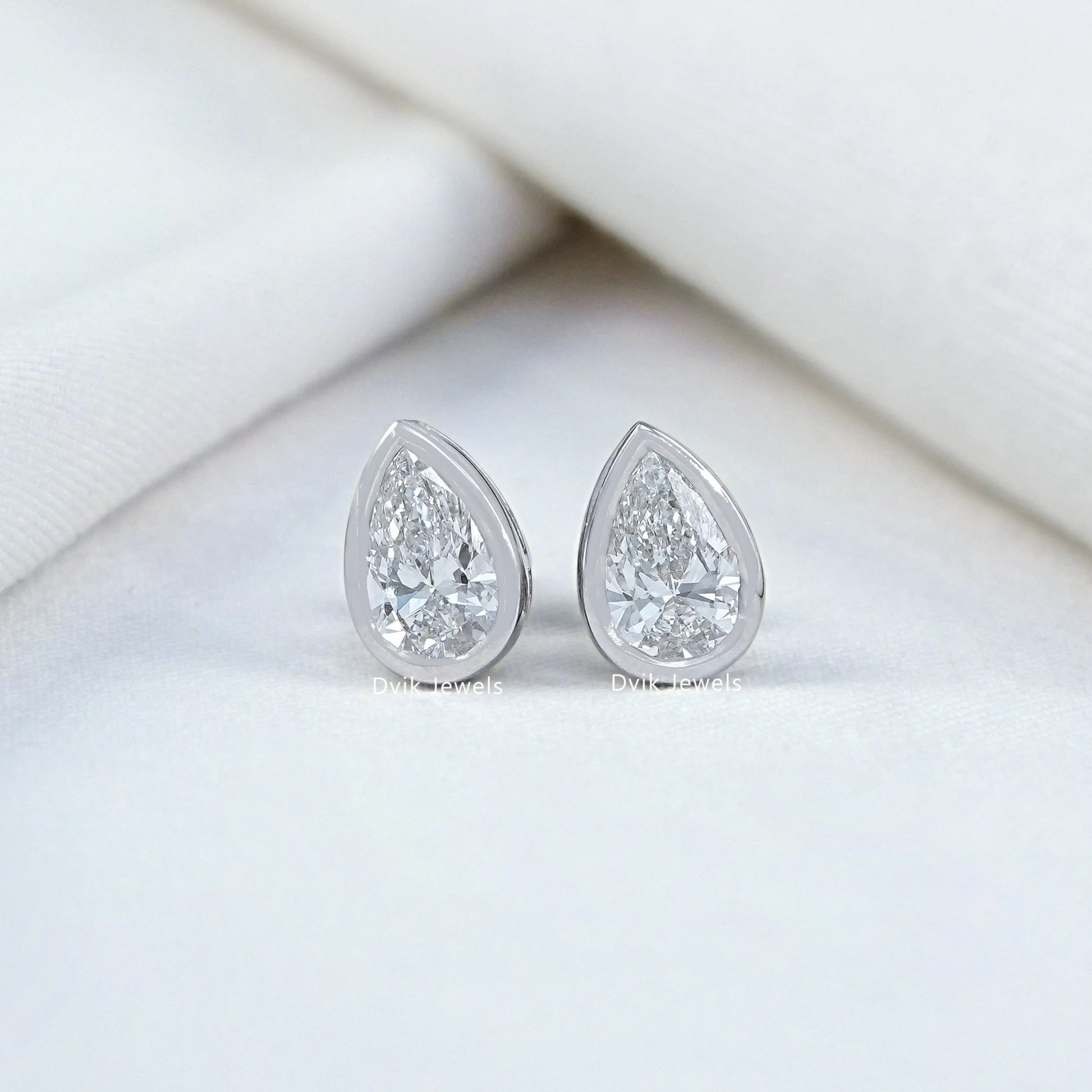 Lab Diamond Pear Shaped Bezel Set Stud Earrings