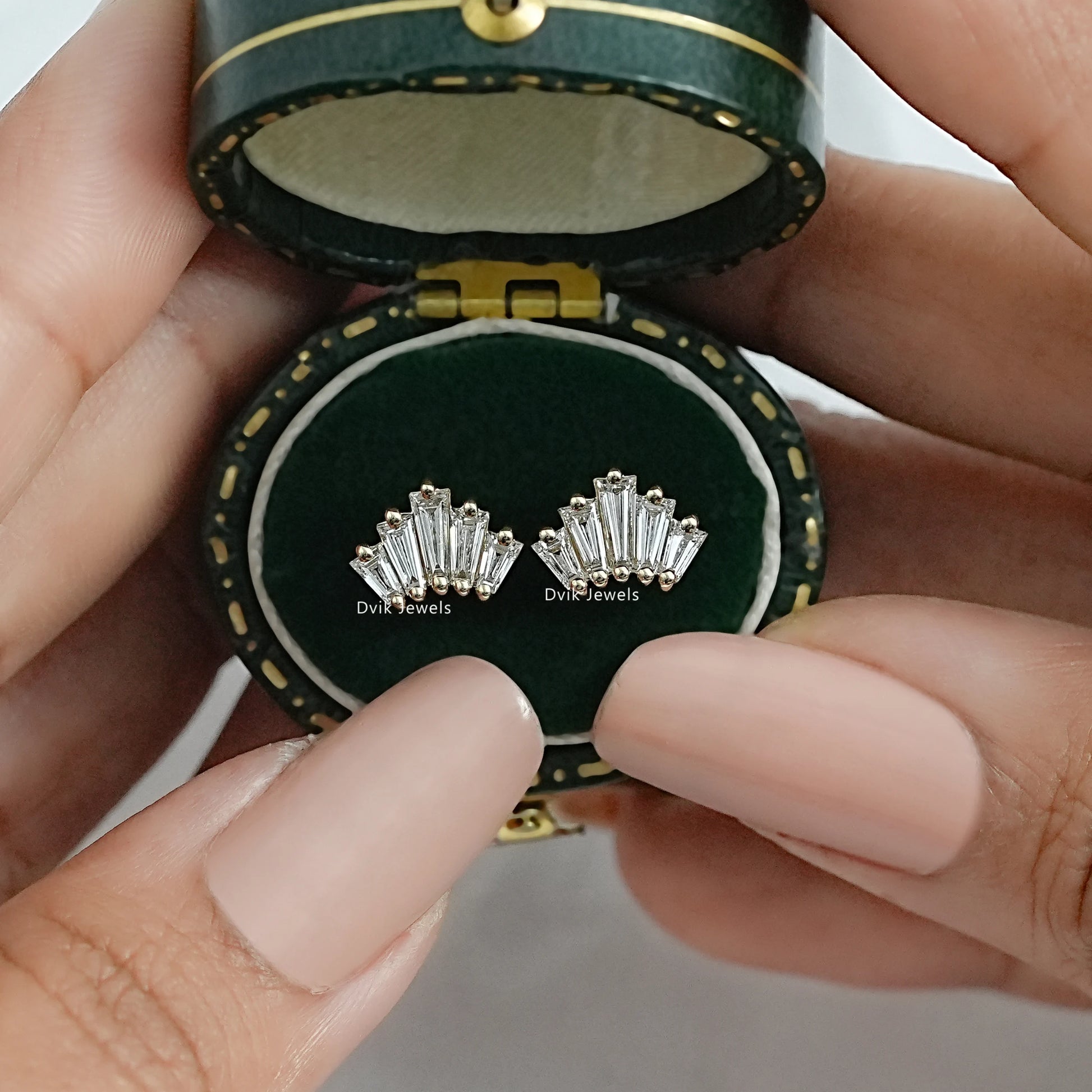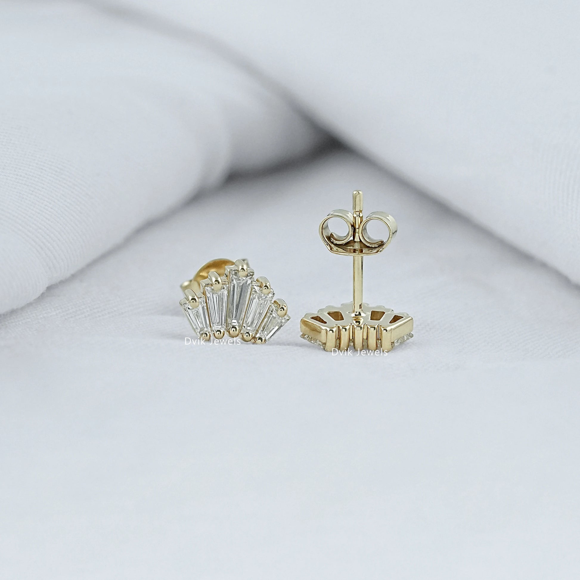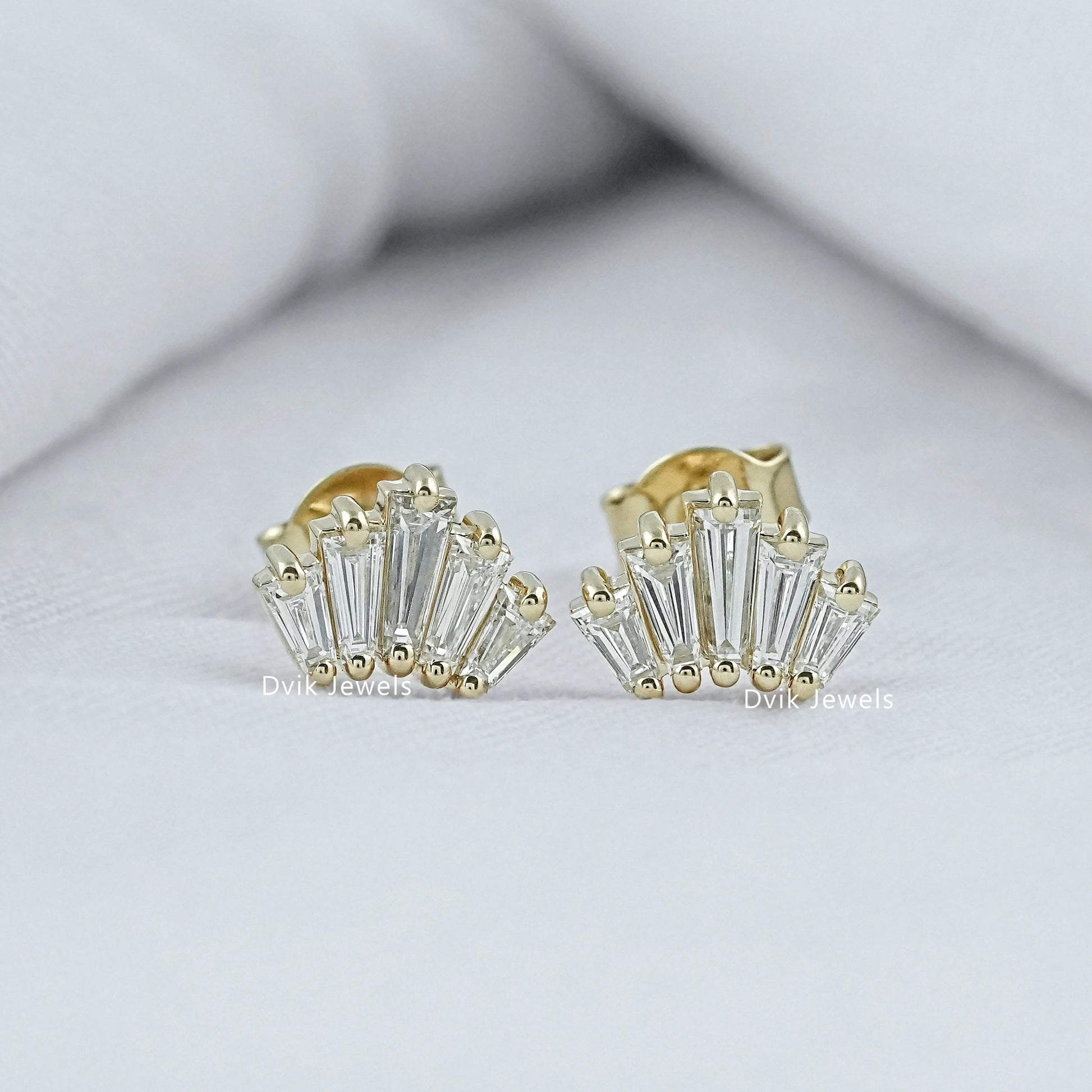 Baguette Cut Lab Diamond Fan Cluster Stud Earrings