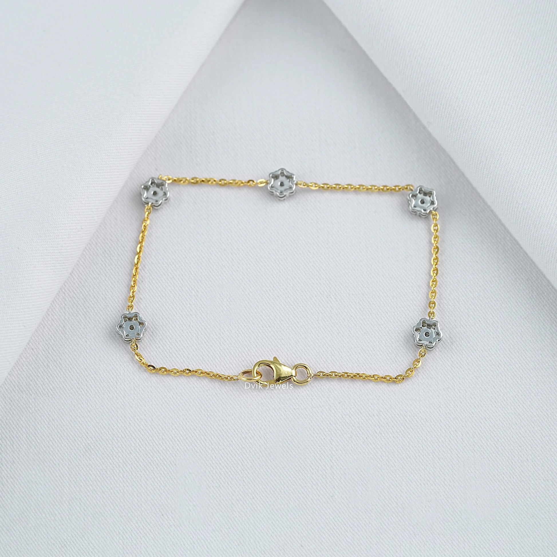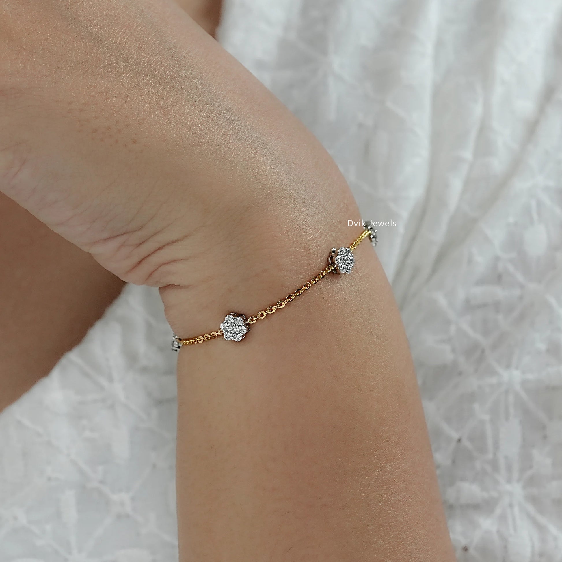 Floral Cluster Lab Diamond Station Chain Bracelet