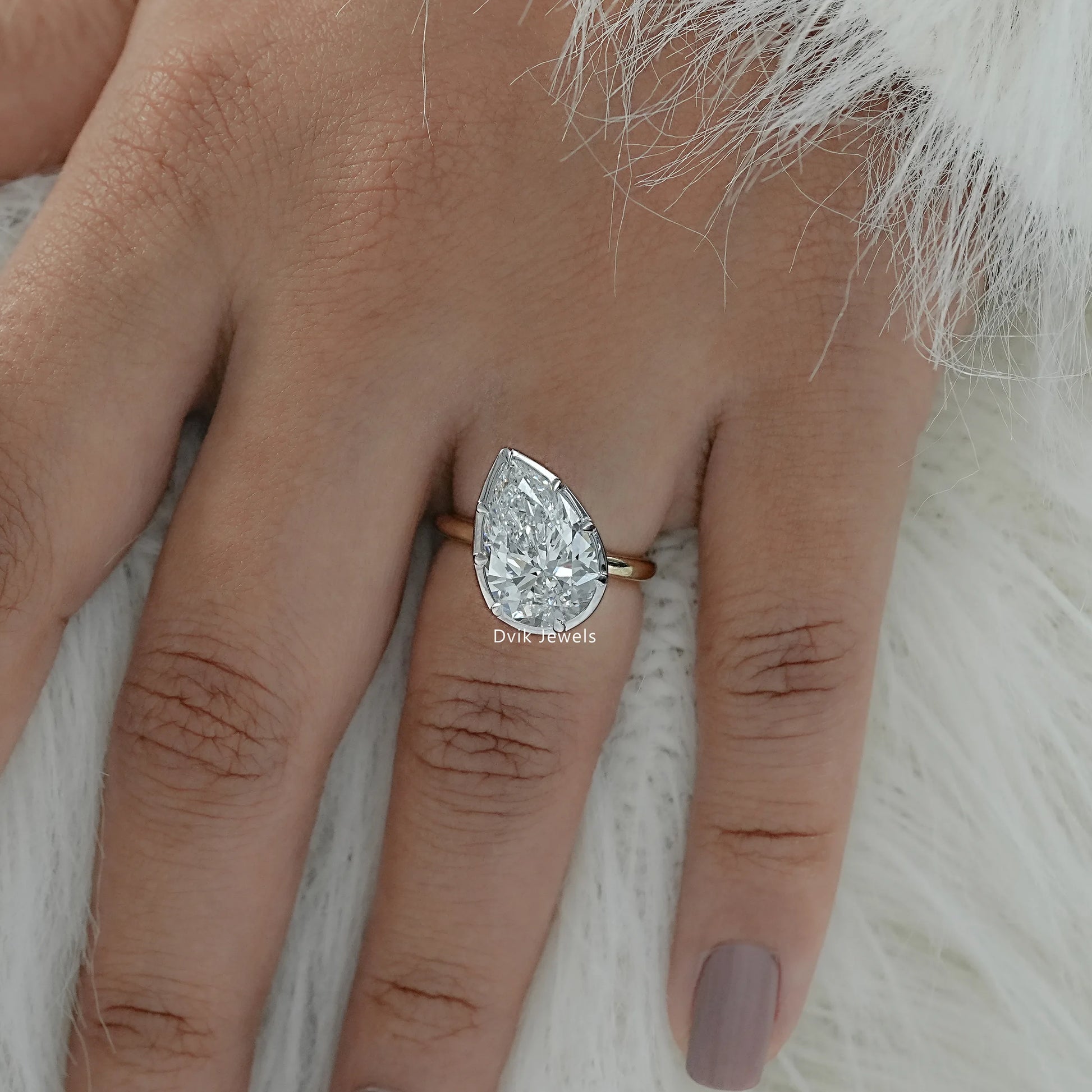Pear Cut Lab Diamond Prong Setting Engagement Ring