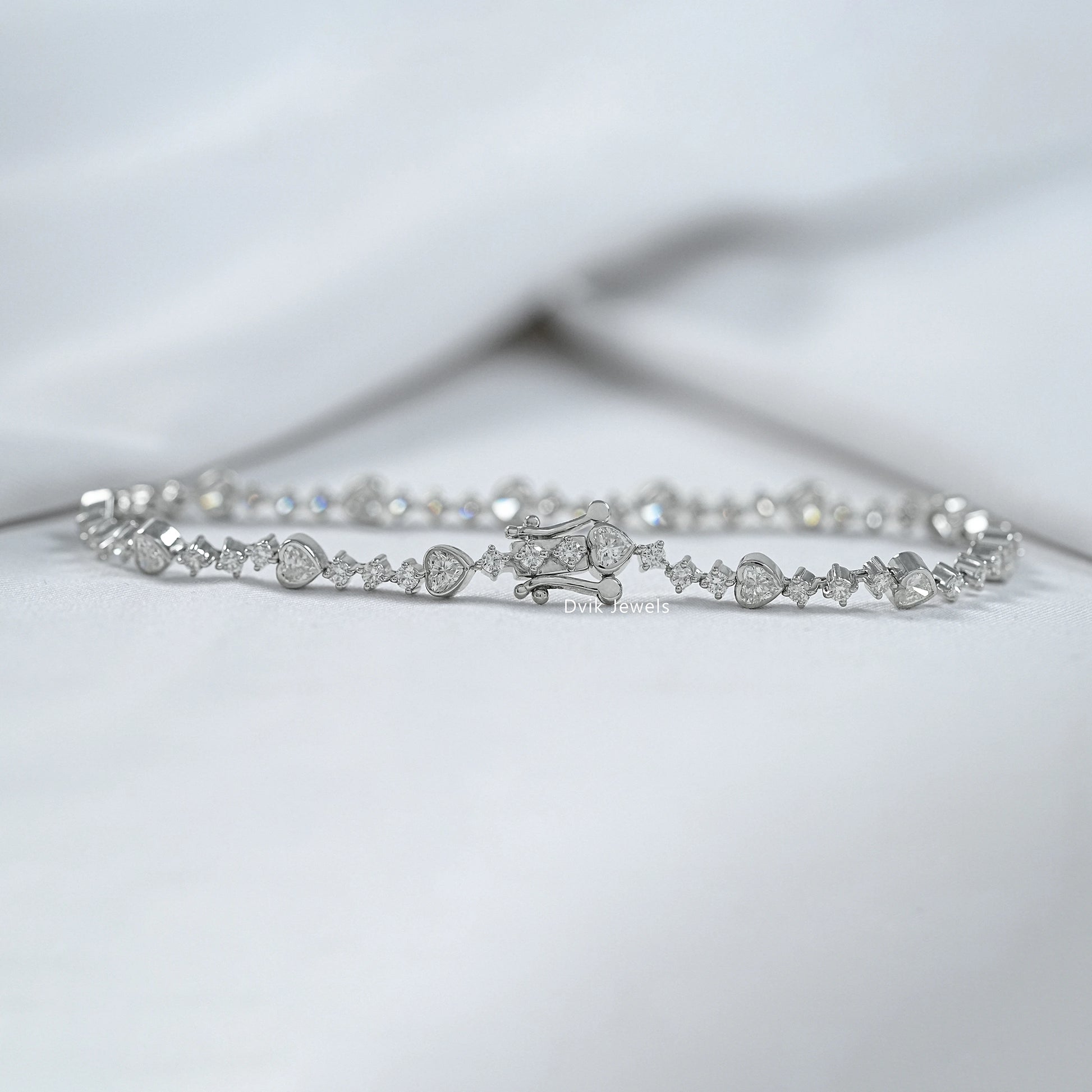 Mixed Heart and Round Cut Lab Diamond Tennis Bracelet