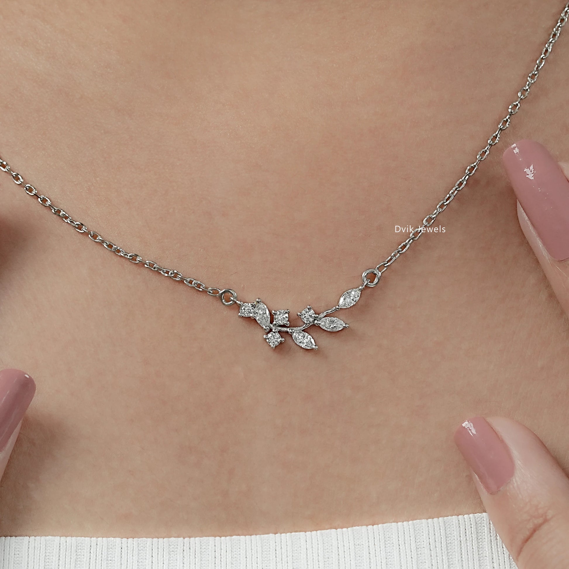 Marquise Cut Minimalist Leaf Diamond Pendant