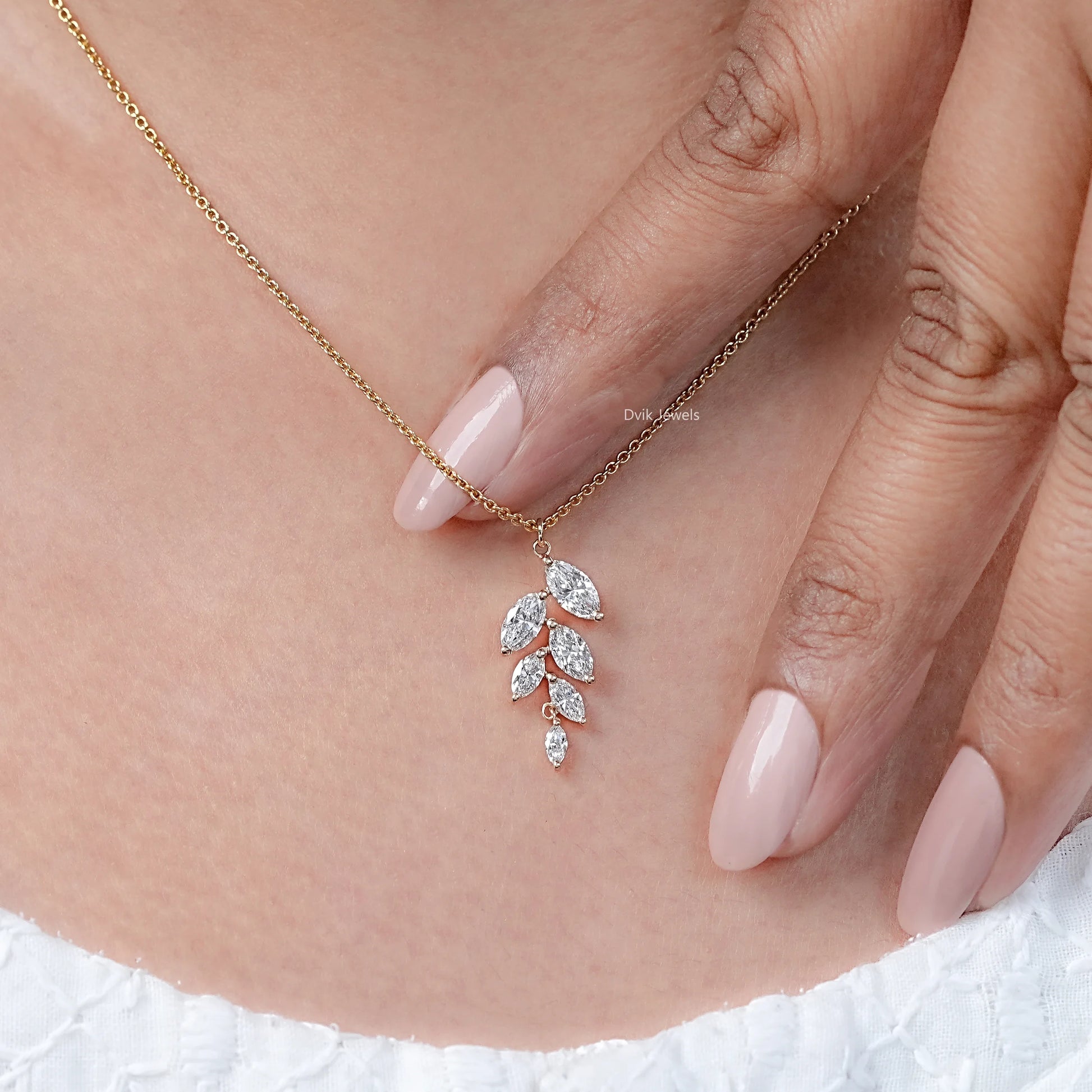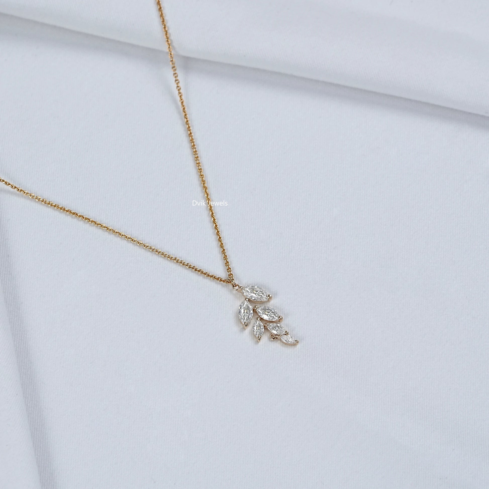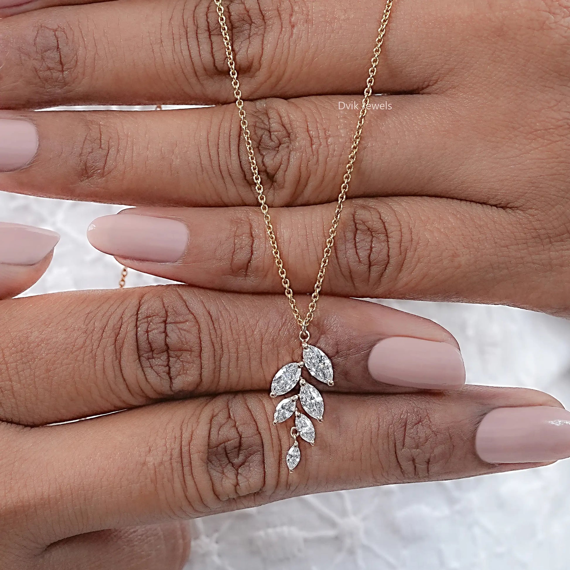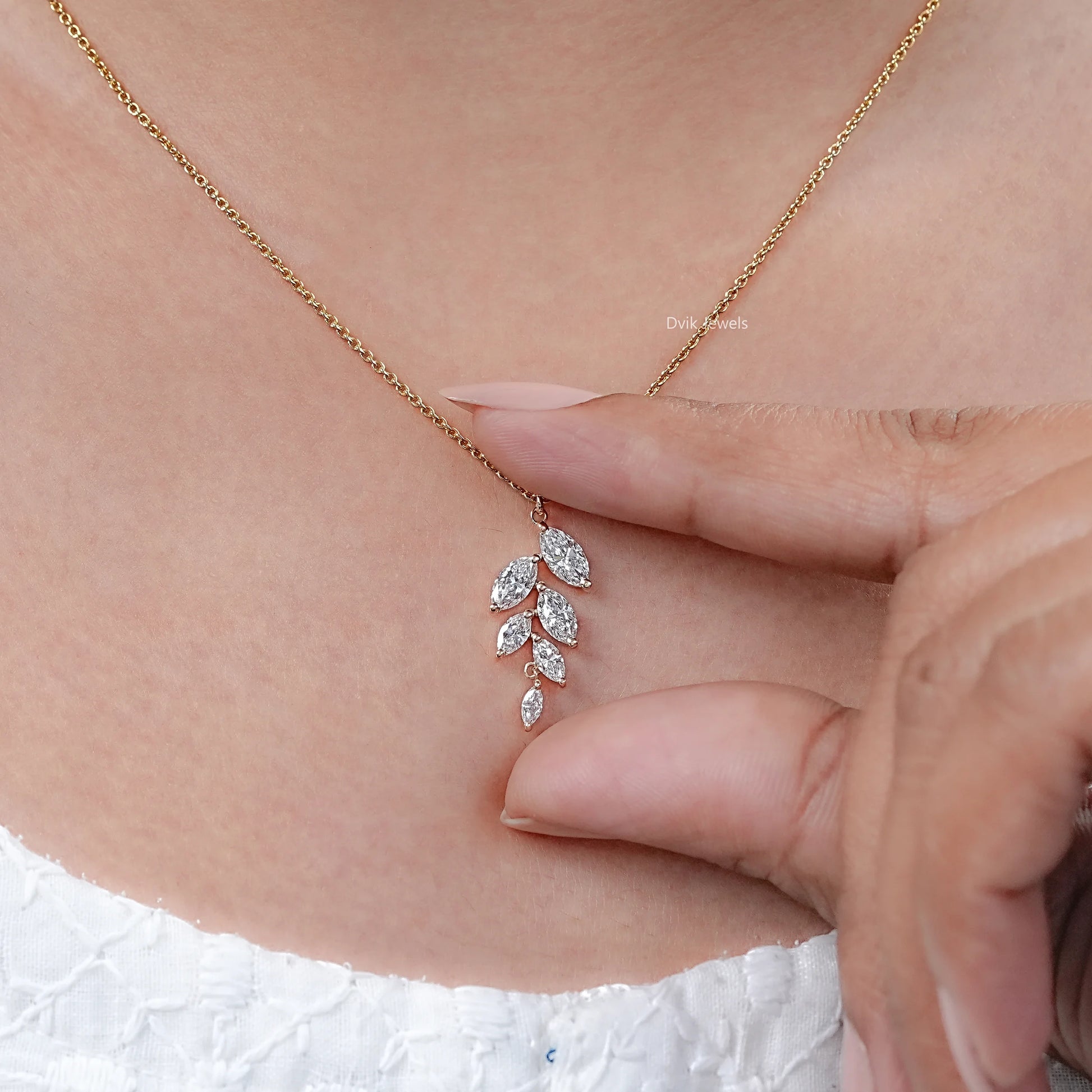 Marquise Cut Lab Diamond Leaf Style Necklace