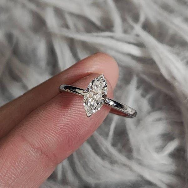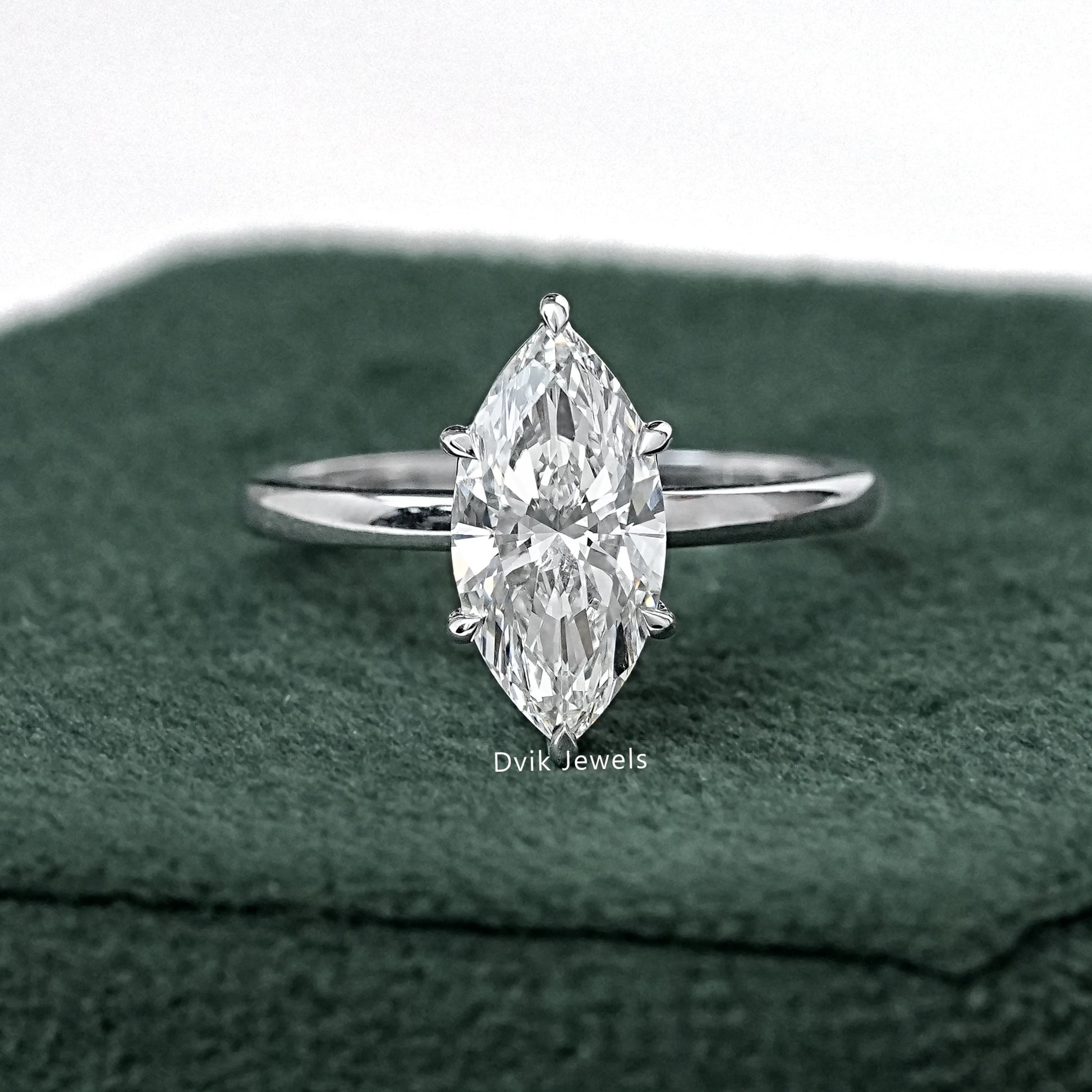Marquise Cut Lab Diamond Solitaire Engagement Ring