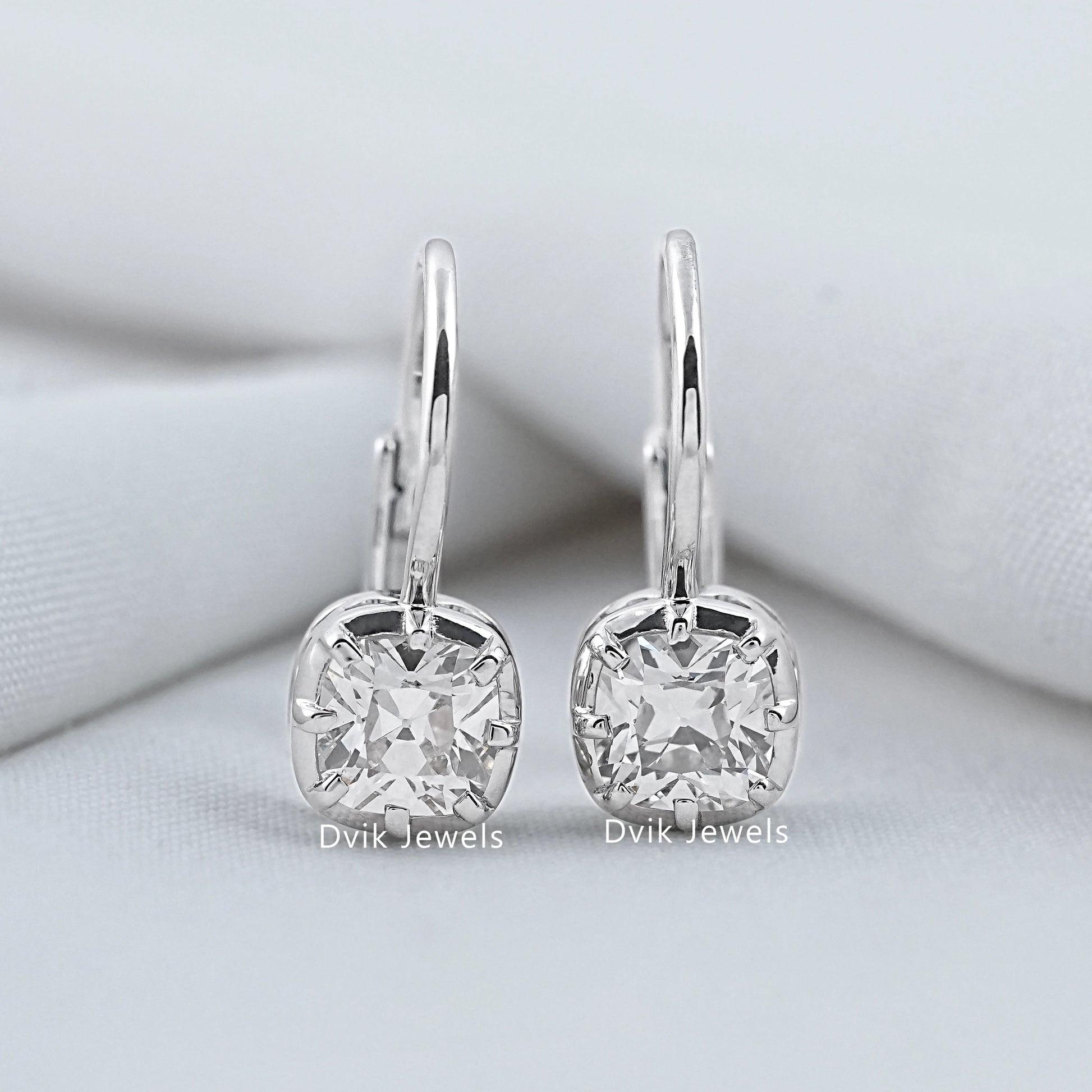 Old Mine Cut Square Cushion Diamond Leverback Earrings