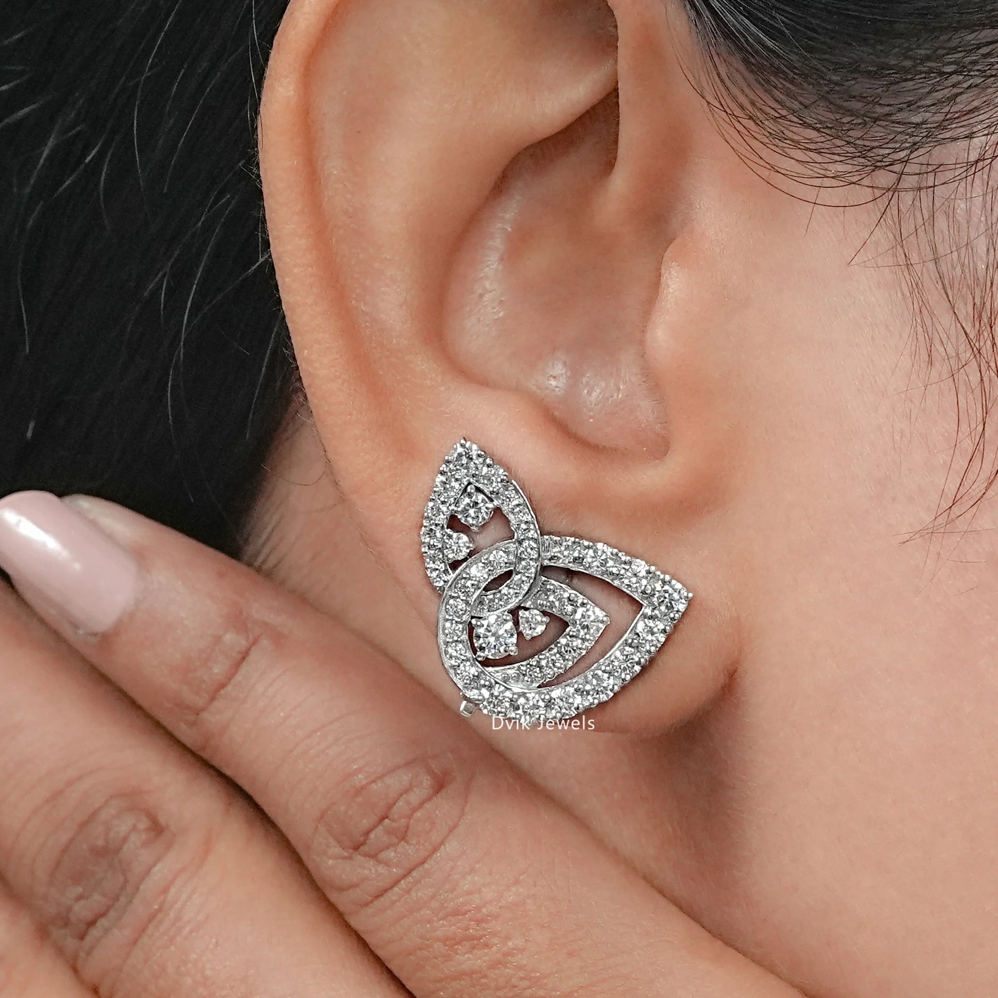 Open Pear Shape Round Diamond Cluster Set Earrings