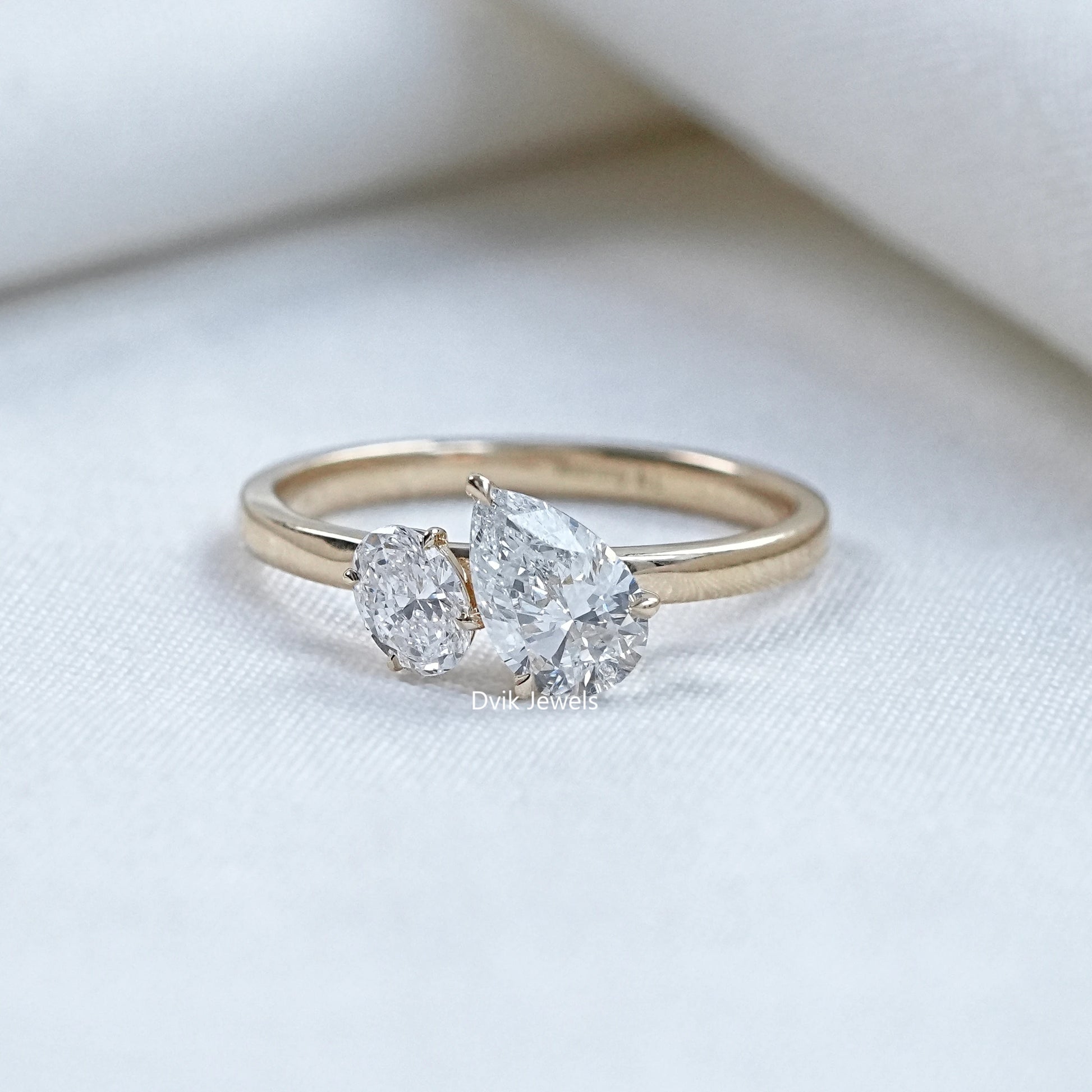Pear And Oval Cut Lab Diamond Two Stone Ring