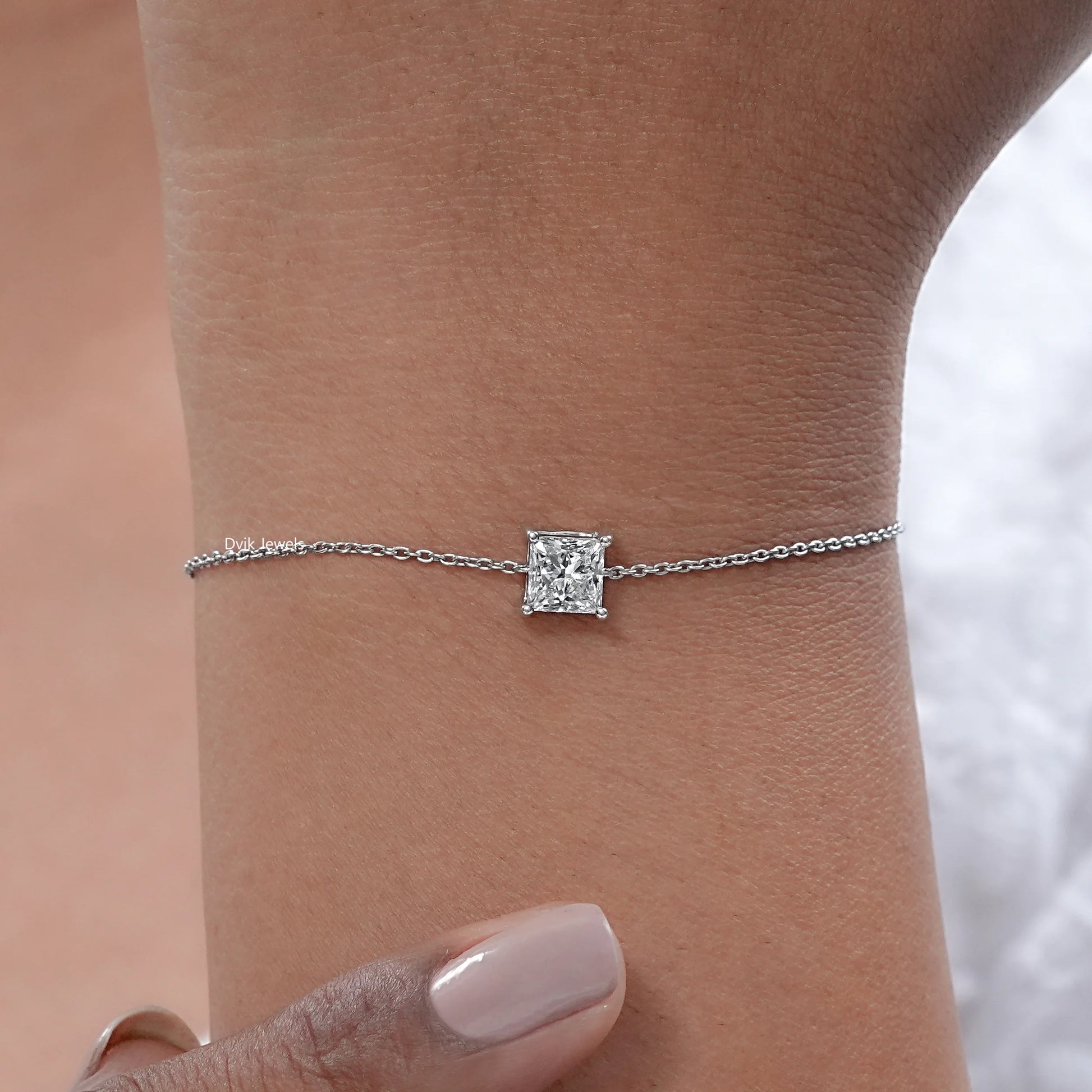 Princess Cut Lab Grown Diamond Solitaire Bracelet