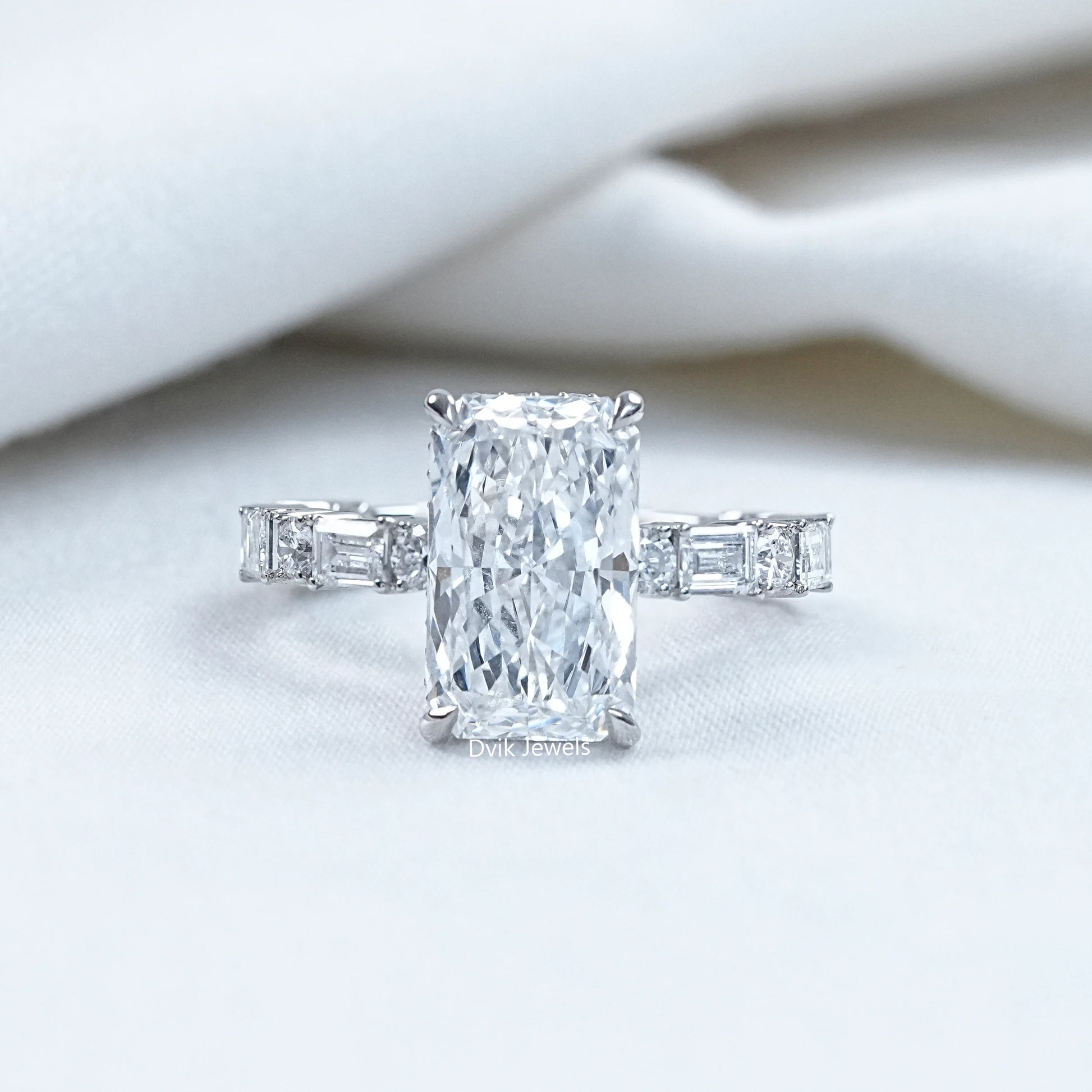 Radiant Cut Lab Diamond Accent Engagement Ring