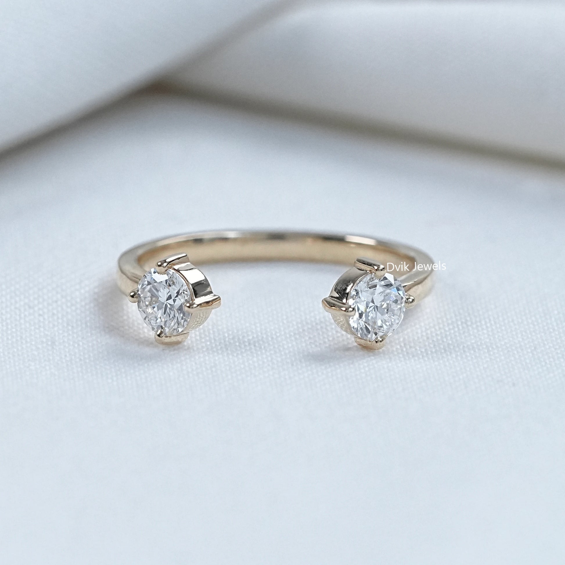 Round Cut Lab Diamond Open Gap Two Stone Ring
