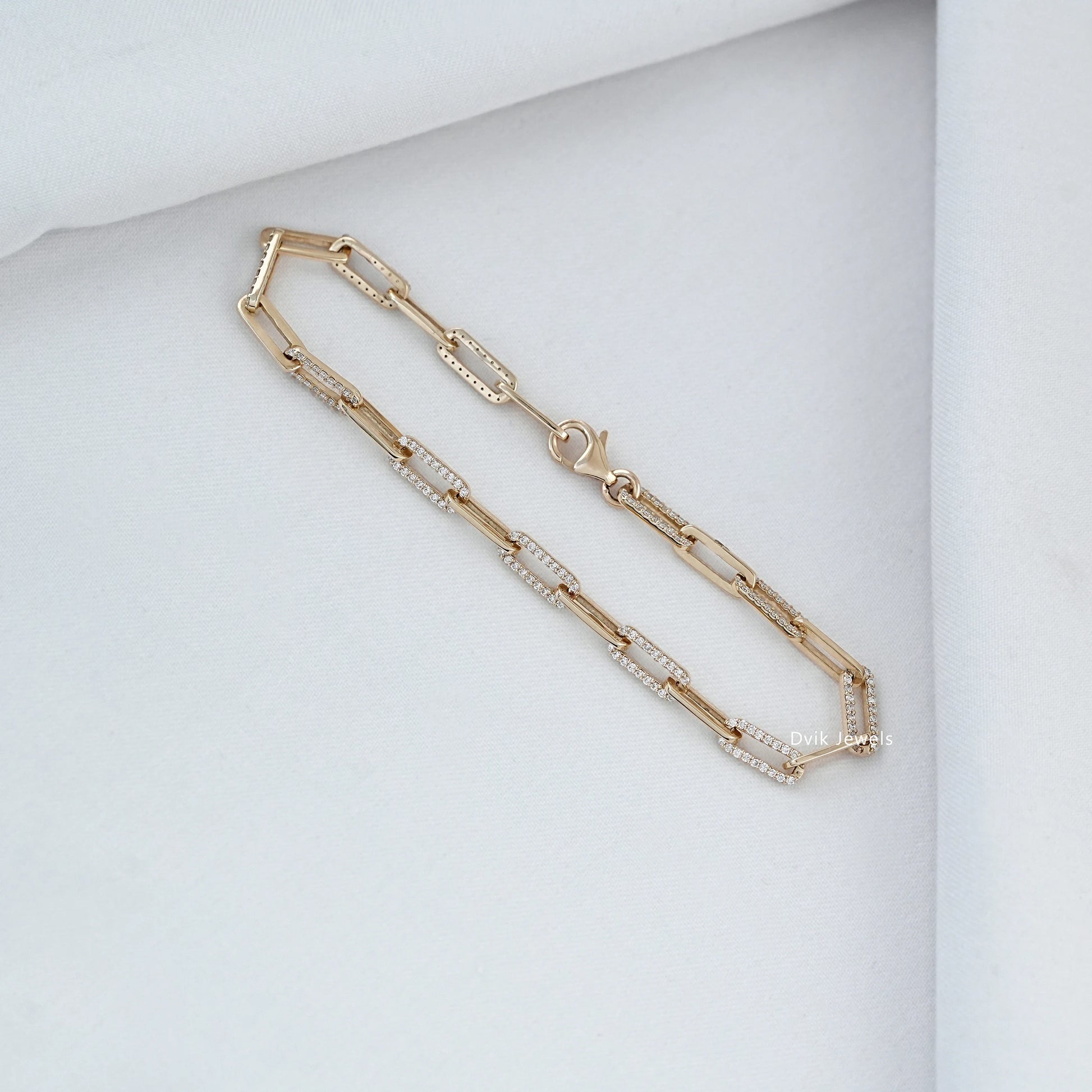 Round Cut Lab Diamond Paper Clip Link Bracelet