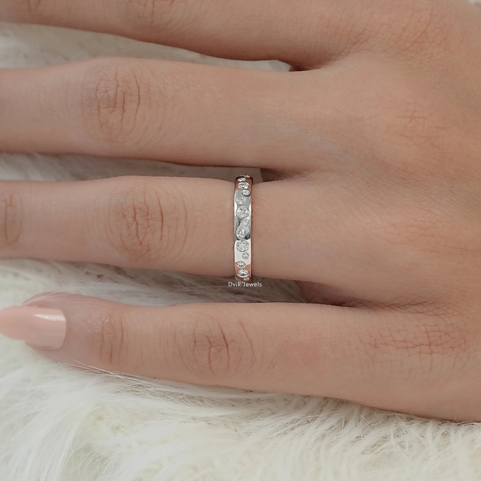 Round Cut Diamond Scattered Bezel Set Wedding Band