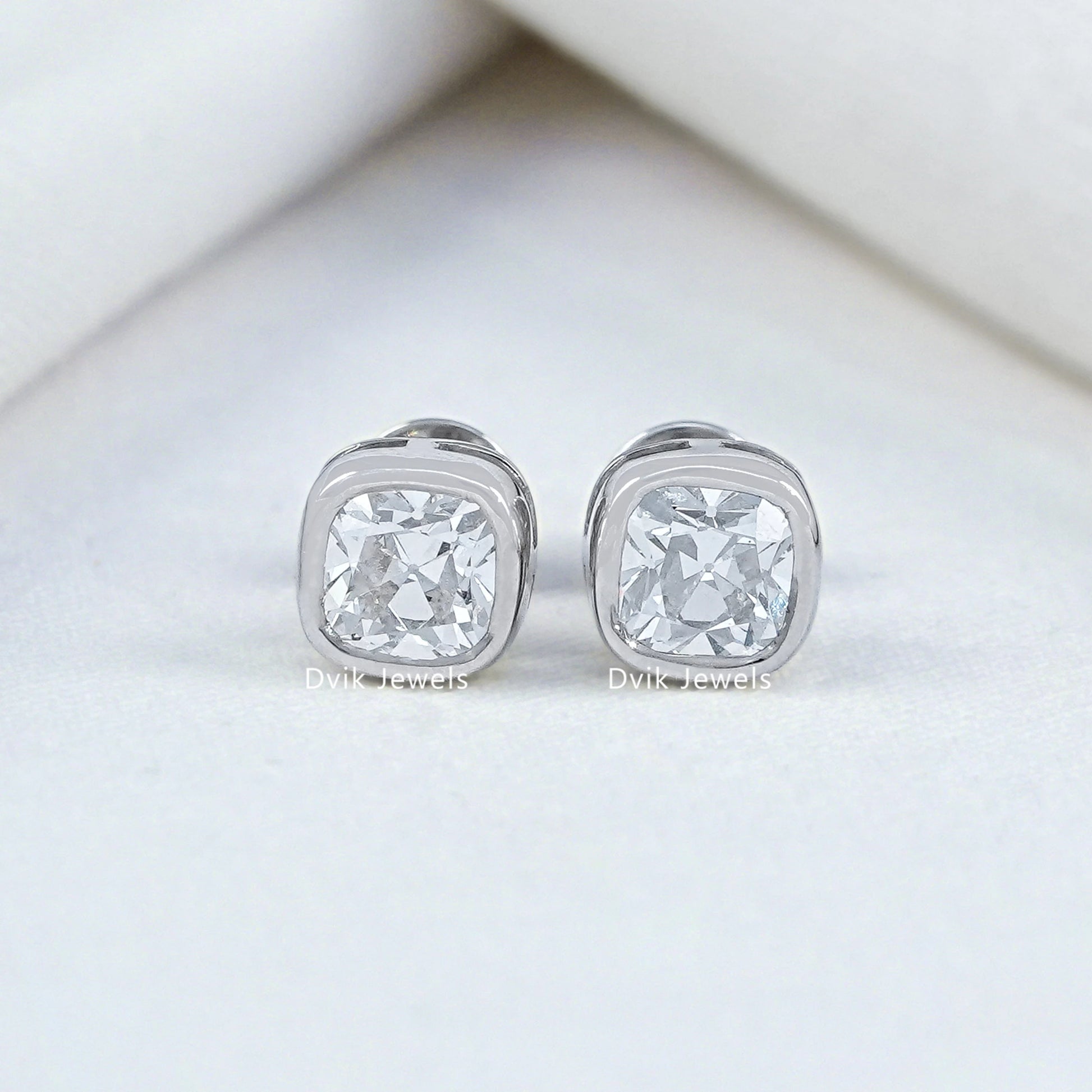Square Old Mine Cushion Cut Lab Diamond Earrings