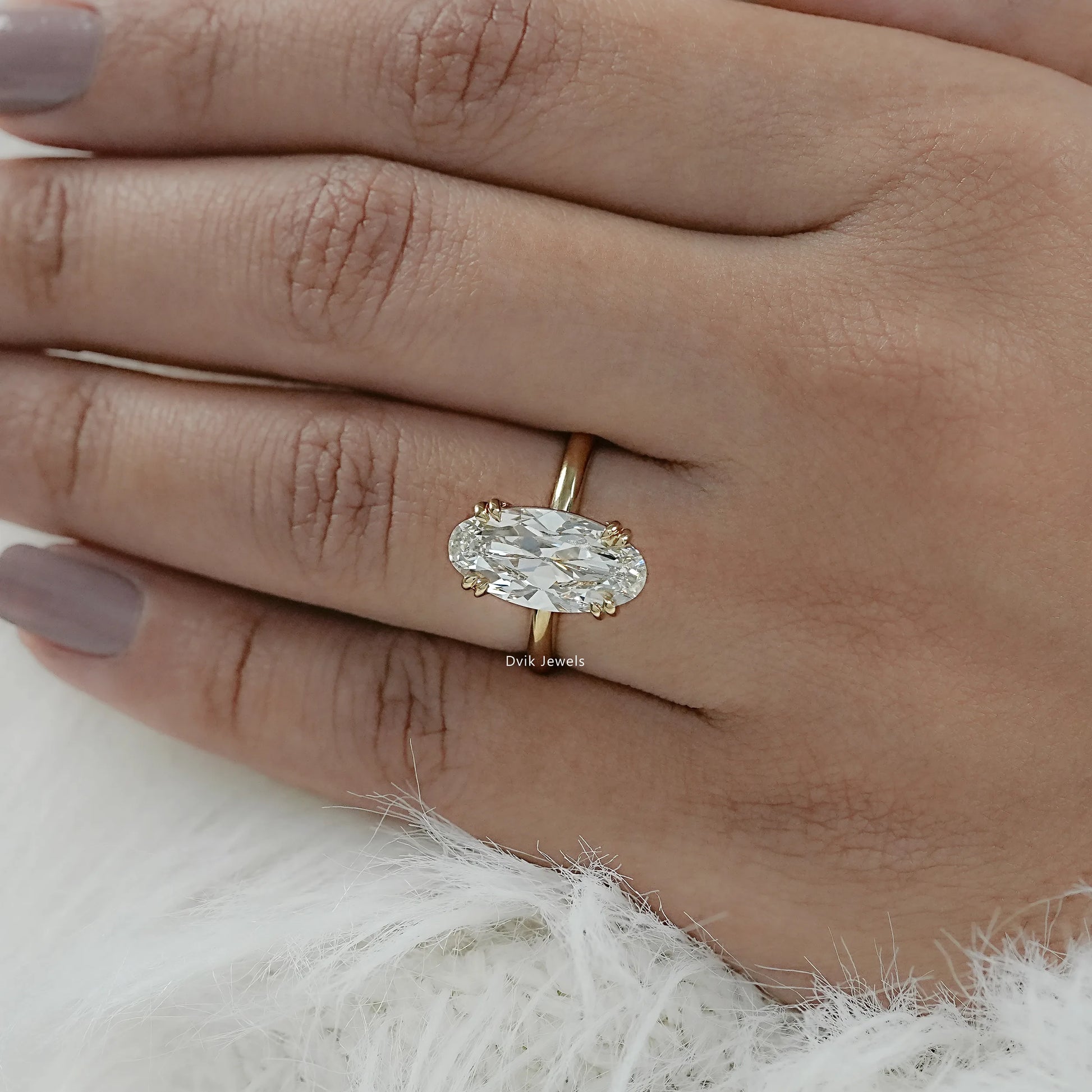 Two Prong Set Old Mine Moval Cut Lab Diamond Solitaire Ring